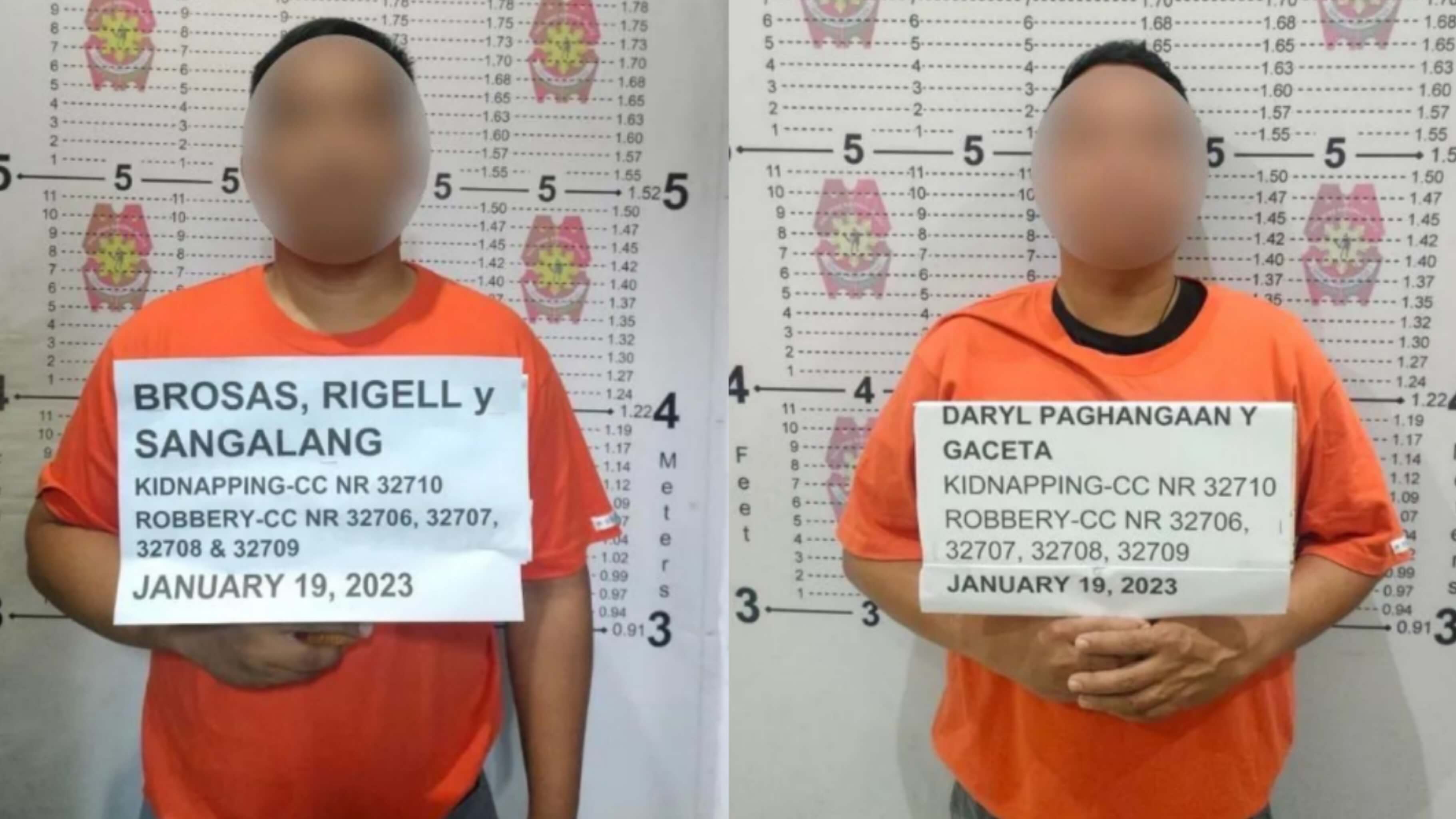 The arrested suspects were two of the three subjects of a warrant of arrest dated Jan. 17, 2023, issued by Presiding Judge Luvida Padolina Roque of the Regional Trial Court Branch 29 in San Pablo City Laguna, for the crime of robbery (with recommended bail set at PHP400,000 each); and kidnapping and serious illegal detention (with no bail recommended).