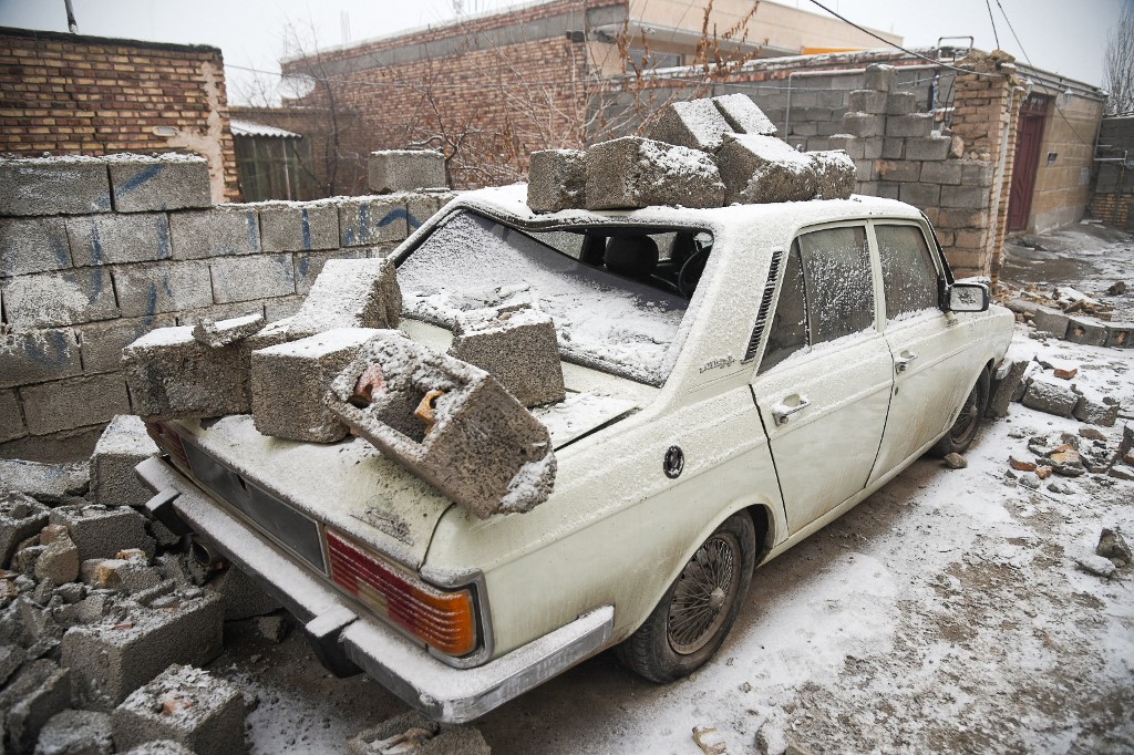 A picture shows the damage after an earthquake struck the city of Khoy in Iran's West Azerbaijan province on January 29, 2023. A 5.9-magnitude earthquake struck northwest Iran near the border with Turkey late Saturday, killing at least three people and injuring 816, state media said. The shallow quake hit the city of Khoy in West Azerbaijan province at 9:44 pm (1814 GMT), the Seismological Center of the University of Tehran said.