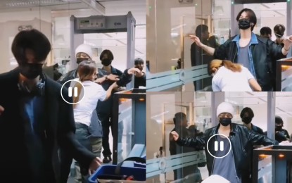 SECURITY BREACH. Screeners and their supervisors at the NAIA are under probe for filming at the security checkpoint. The female personnel who frisked the male passengers is also under probe since female to male screening is only allowed when there is inadequate manpower particularly in provincial airports. (Screenshots from video clip posted on "Enhypen" Facebook page)