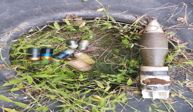 After the accurate artillery fires, soldiers recovered an M16 rifle, two homemade pistols, a .45-caliber pistol, five M79 rifle grenades, and three improvised bombs, including an explosive device fashioned from 81mm mortar with mobile phones as trigger mechanism.