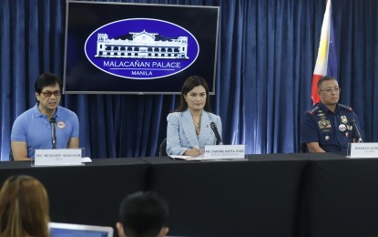 RESIGNATION UPDATES. Department of the Interior and Local Government Secretary Benjamin Abalos Jr. (left) and Philippine National Police chief Gen. Rodolfo Azurin Jr. (right) provided updates on the courtesy resignation of third-level officials following the lapse of the deadline for the measure during a briefing with the Malacañang Press Corps on Wednesday (Feb. 1, 2023). Azurin, who is among the high-ranking officers who filed his courtesy resignation, will be among the five-member committee tasked to review the top brass of the PNP. (PNA photo by Alfred Frias)