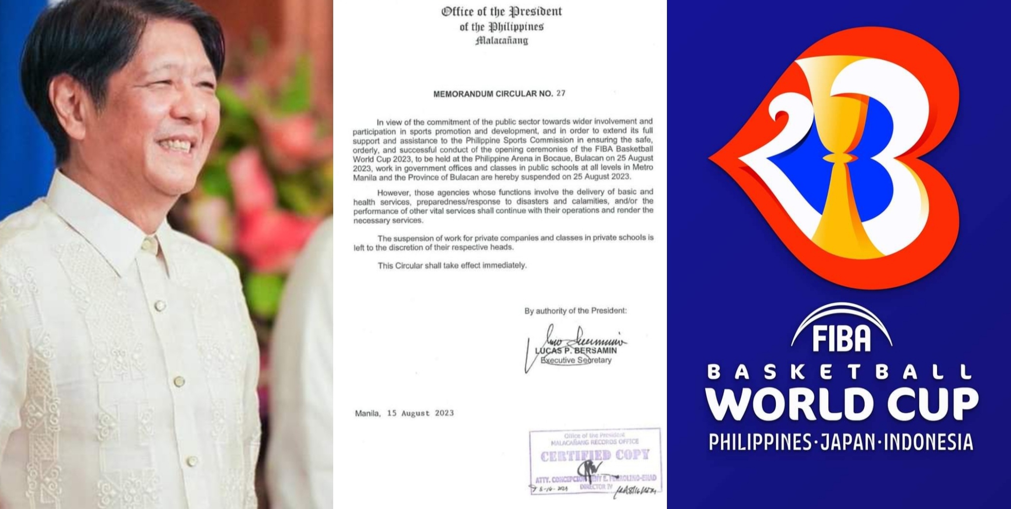 BBM Announces Suspension Of Classes And Government Work For FIBA Basketball World Cup 2023 Opening