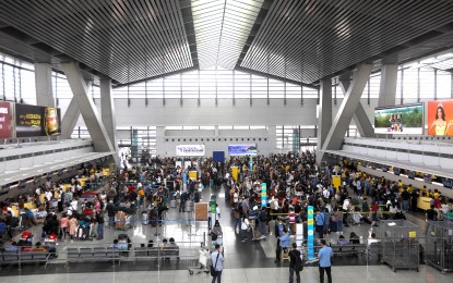 TECHNICAL GLITCH. Passengers at NAIA Terminal 3 in Pasay City queue at the check-in counter as it resumes its operation after the Air Traffic Management Center of the Civil Aviation Authority of the Philippines experienced a technical glitch on Jan. 1, 2023. The incident affected over 56,000 passengers. (PNA photo by Yancy Lim)