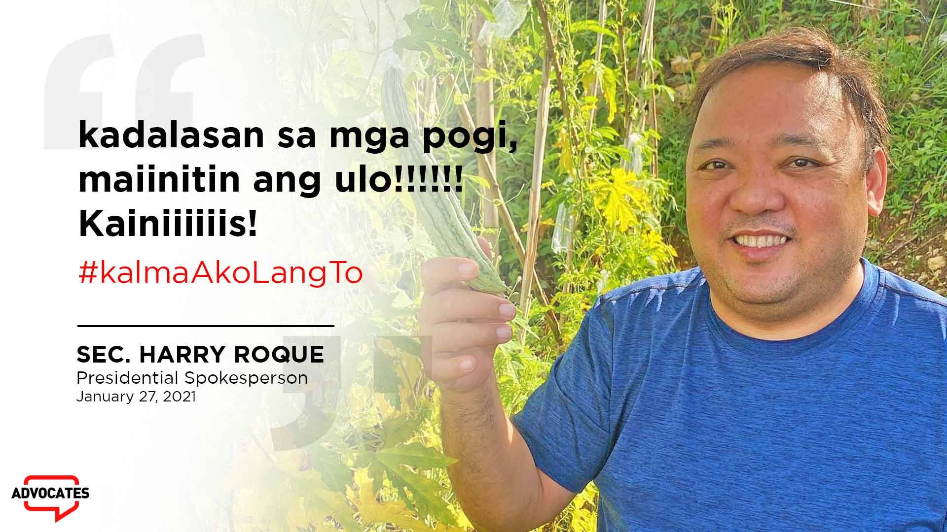 The Secretary recently took a swipe at an unidentified comedian who apparently shared his or her point of view on the topic of vaccines. Roque obviously took issue with the comedian’s opinion. He said: “Di ko sinabing hindi puwede magsalita kahit sino. Pero pagdating sa bakuna, kinakailangan na ang dapat pakinggan ay ang eksperto sa bakuna. Eh sino ang ating pagkakatiwalaan? Siguro po hindi mga komedyante.”