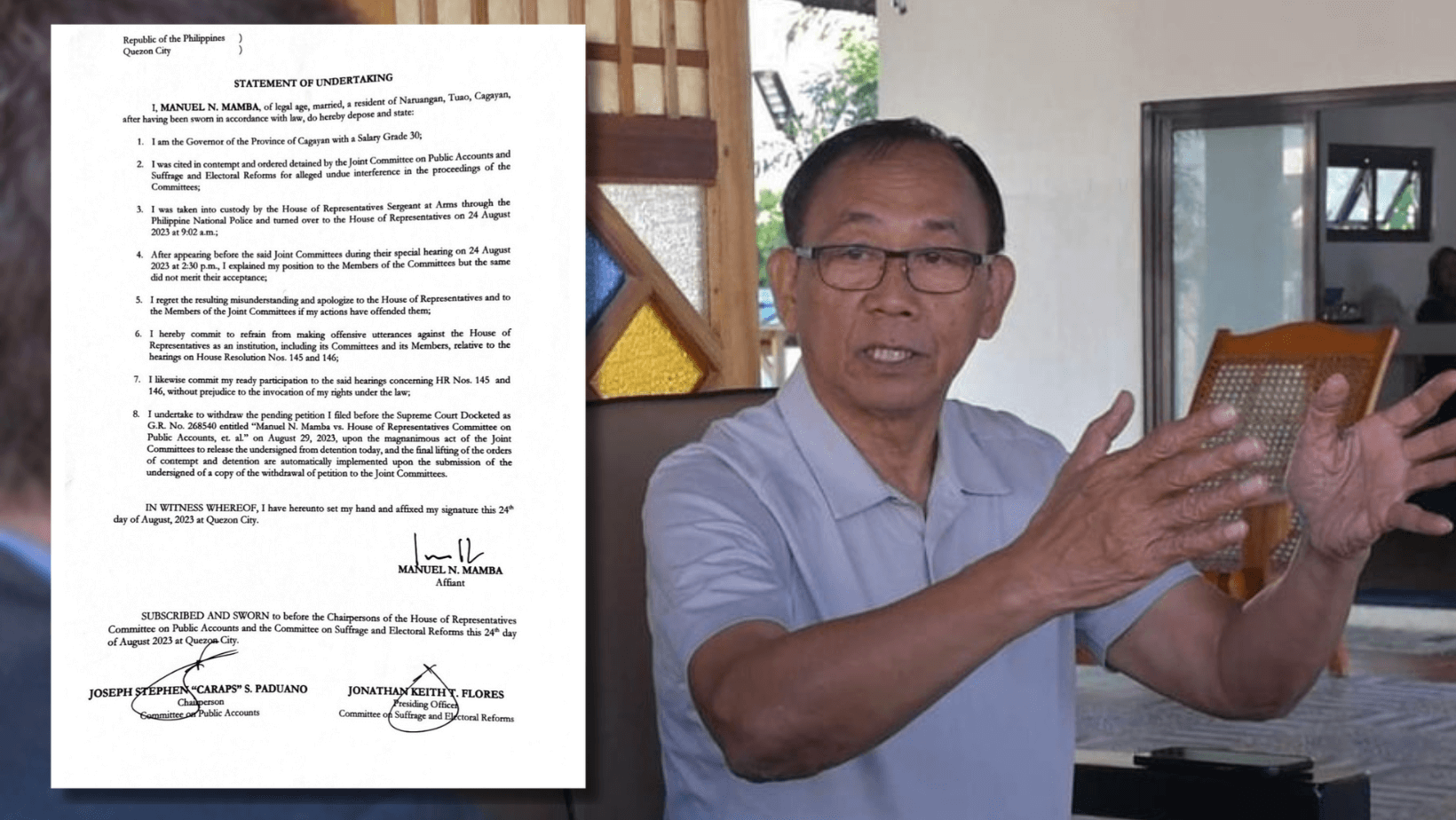 In a surprising turn of events, Governor Manuel N. Mamba of Cagayan Province has been permitted to leave the House of Representatives not due to a Temporary Restraining Order (TRO) issued by the Supreme Court, but rather on the strength of a personal Statement of Undertaking he willingly signed.