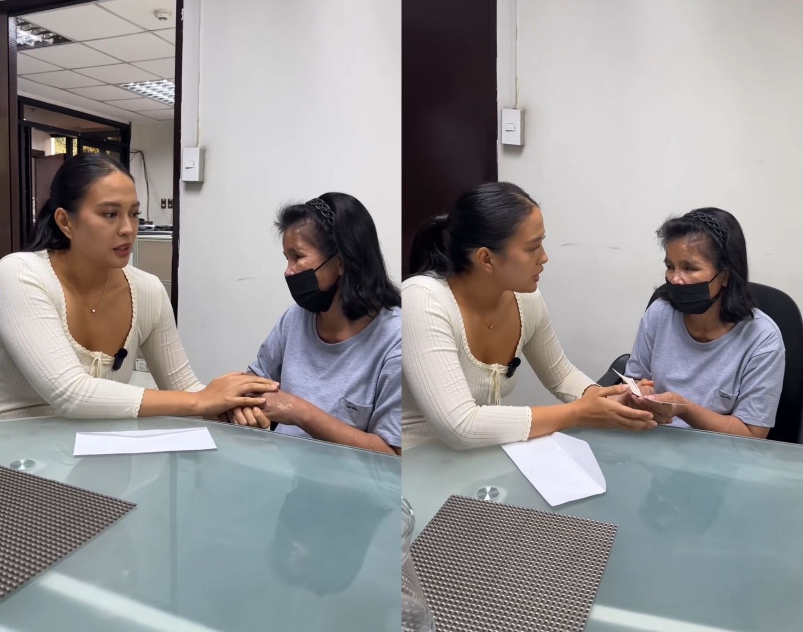 The accompanying video features Isabelle sharing heartfelt words with Elvie, stating, "Mayroon po akong maliit na regalo po sa inyo. Kasi nalaman ko ang kuwento mo, nanood ako ng news. At sa tulong po ng mga followers ko at lahat ng nanonood ng story mo, meron silang na-donate po para sa ‘yo." ("I have a small gift for you because I learned about your story, I watched the news. With the help of my followers and everyone who watched your story, they donated to you.")