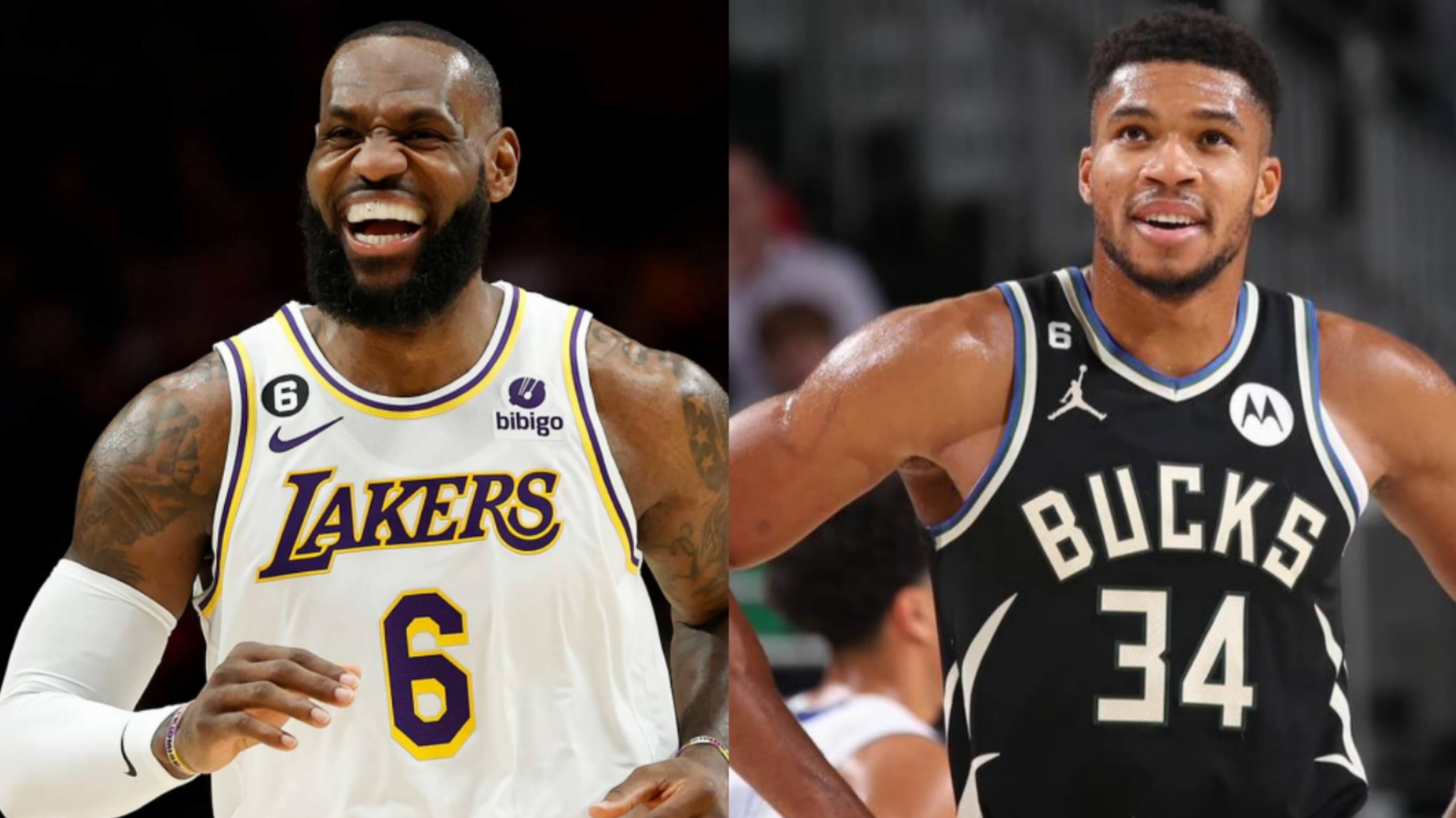 LeBron James, left (Photo from Lakers), Giannis Antetokounmpo, right (Giannis Facebook photo)