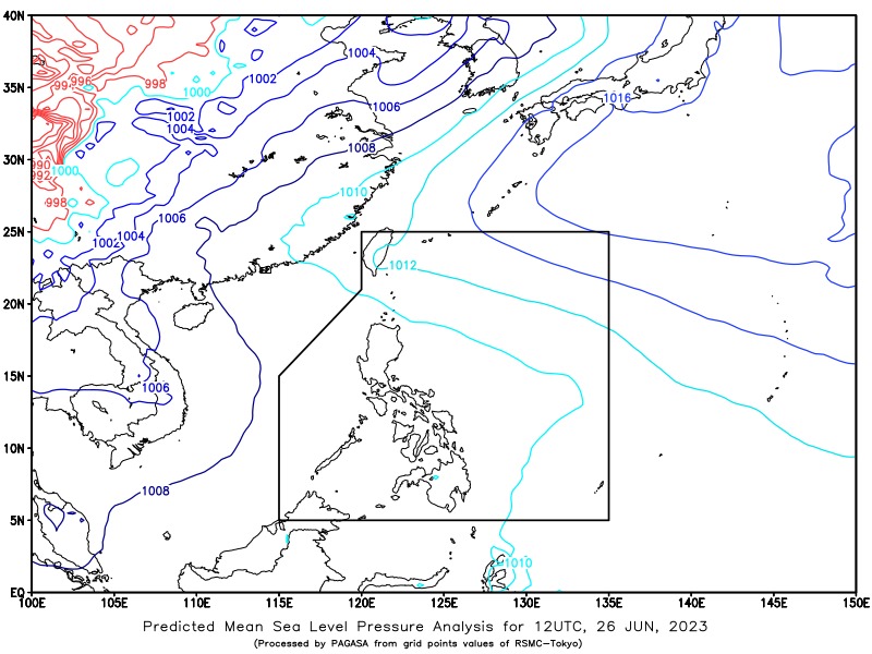 At 3:00 PM on June 26 a Low Pressure Area (LPA) was detected approximately 325 km East of Virac, Catanduanes, at coordinates 13.5°N and 127.2°E. The LPA is currently embedded along the Intertropical Convergence Zone (ITCZ), which is affecting Southern Luzon, Visayas, and Mindanao regions of the Philippines.