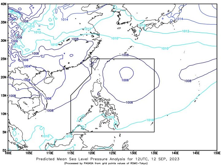 At 3:00 PM today September 12, 2023, the Philippine Atmospheric, Geophysical, and Astronomical Services Administration (PAGASA) issued weather advisories based on the latest data regarding a Low Pressure Area (LPA) situated approximately 705 kilometers East Northeast of Basco, Batanes, or 710 kilometers East of Itbayat, Batanes (21.7°N, 128.6°E).