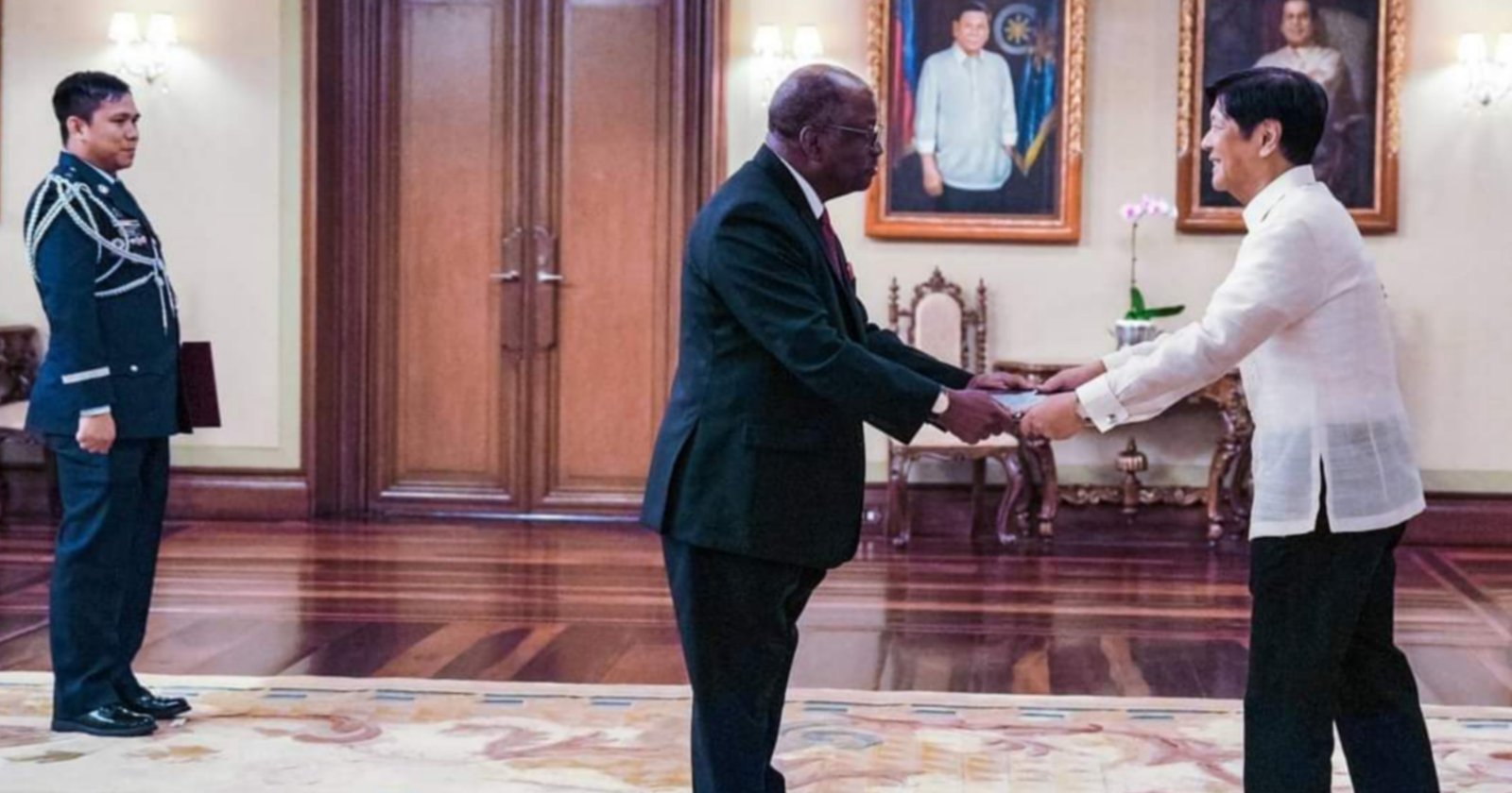 President Ferdinand R. Marcos Jr. welcomed Namibia's Non-Resident Ambassador to the Philippines, H.E. Herman Pule Diamonds, at the Malacañan Palace, expressing the Philippines' eagerness to assist Namibia in agricultural development.