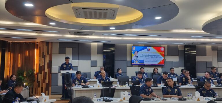 Recently, NCRPO Regional Director PMGEN EDGAR ALAN O OKUBO attended a meeting at the National Headquarters in Camp BGen Rafael T Crame, Quezon City. During the meeting, he personally discussed and presented the additional preparations being undertaken by the NCRPO for SONA 2023 to top-ranking police officials, led by PNP Chief PGEN BENJAMIN C ACORDA, JR.