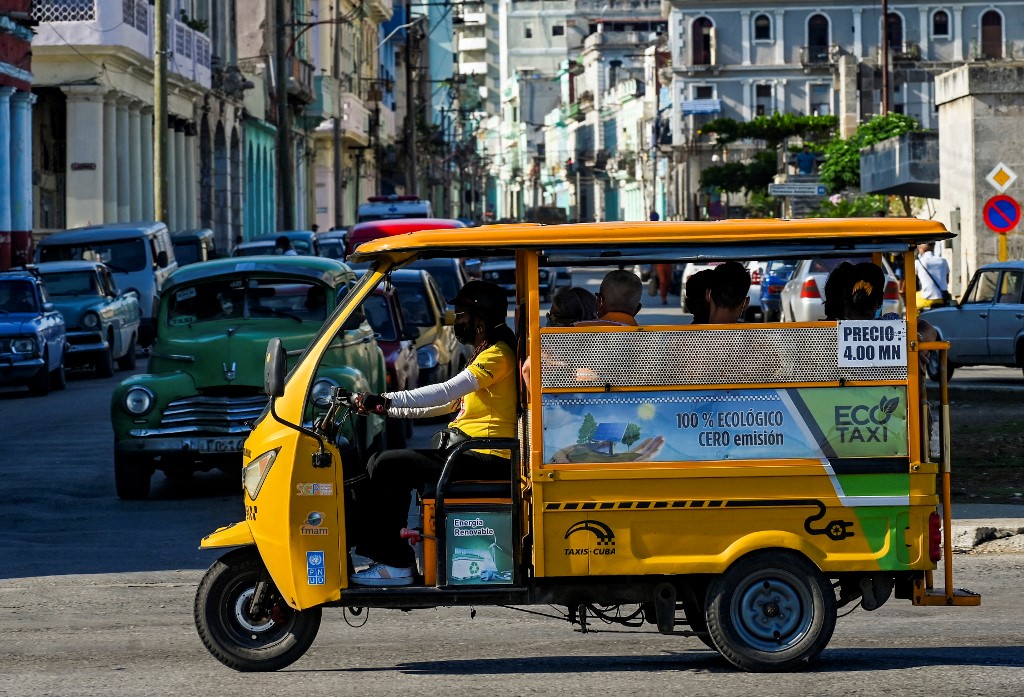 An electric powered tricycle rides along a street of Havana on May 25, 2022. Cubans are opting for motorcycles, tricycles and electric cars in the face of the public transportation and fuel shortage crisis. Yamil LAGE / AFP