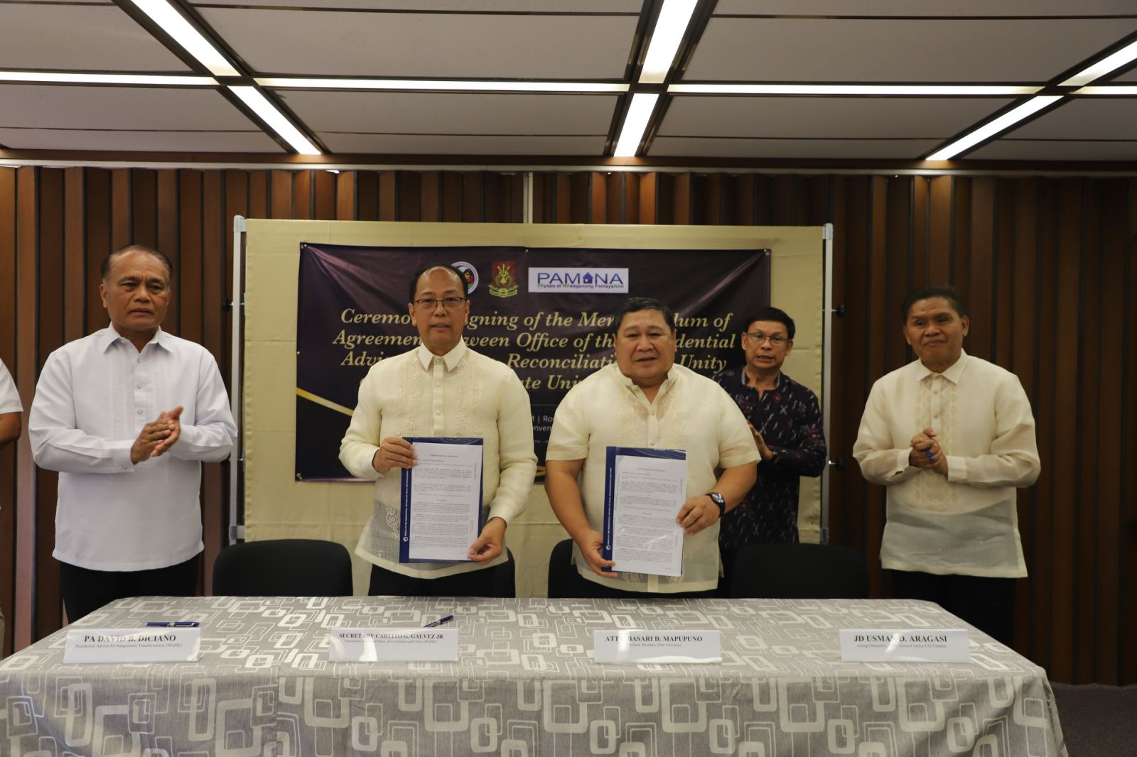 The MOA was signed by Presidential Adviser on Peace, Reconciliation and Unity, Sec. Carlito G. Galvez, Jr., and MSU System President, Atty. Basari D. Mapupuno.