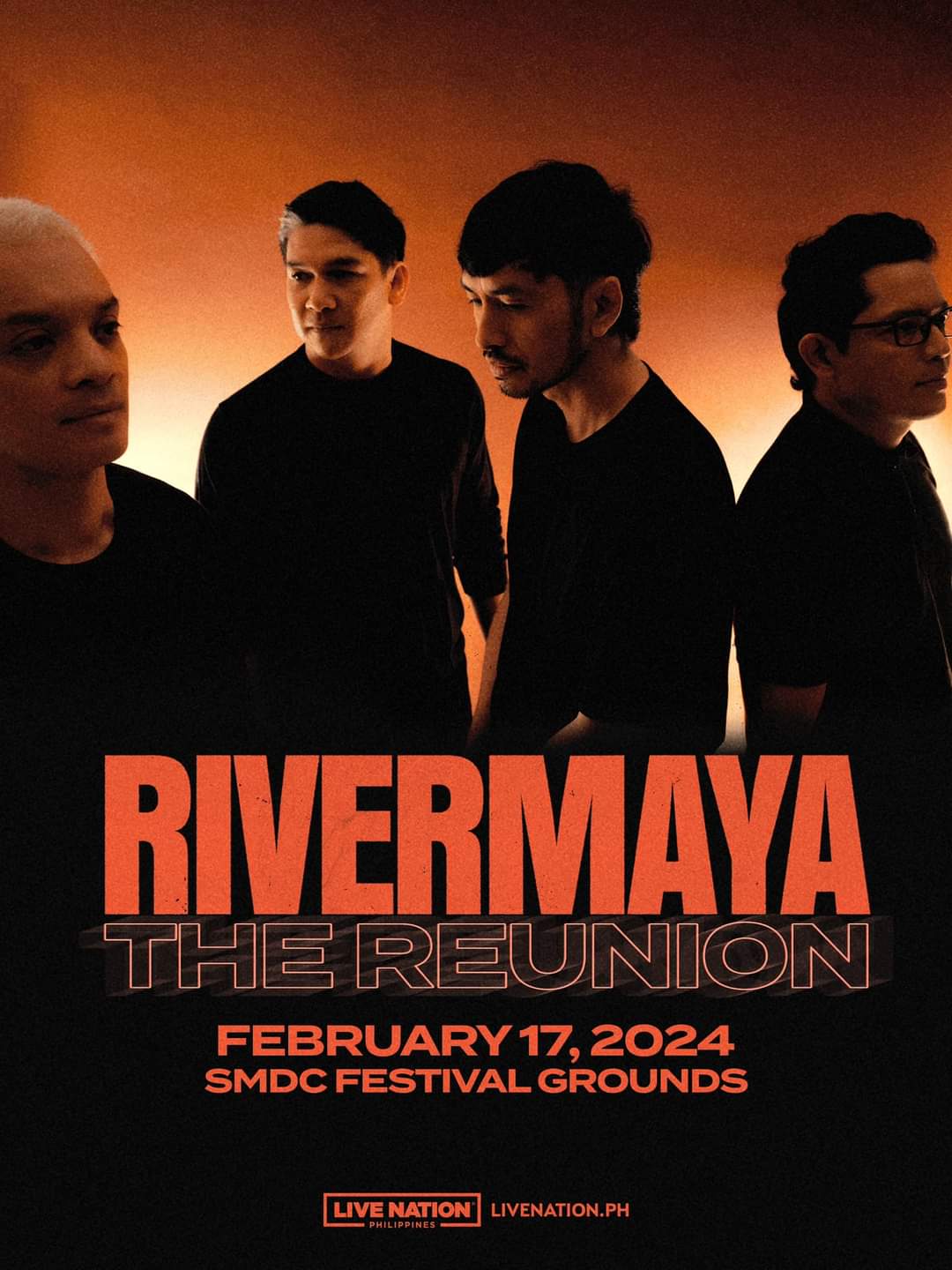 Live Nation Philippines announces the reunion concert of iconic Filipino band Rivermaya. The highly anticipated show, aptly named "Rivermaya: The Reunion," is scheduled to take place on February 17, 2024, at the SMDC Festival Grounds.