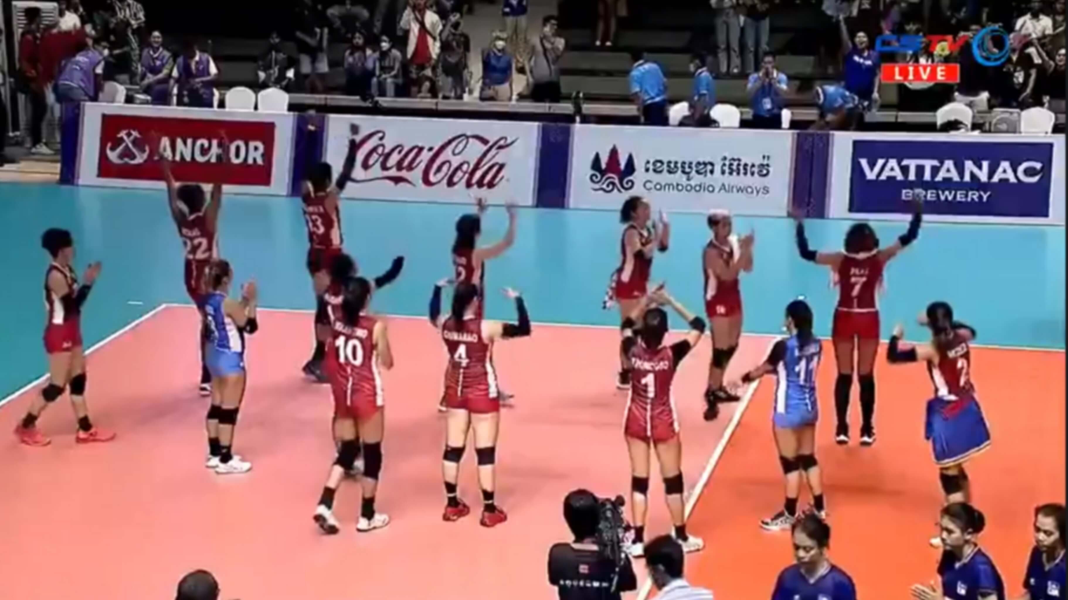They took charge of the game, courtesy of the exceptional performances by Tots Carlos and Mylene Paat. Their relentless attacks left the Cambodian side struggling to defend