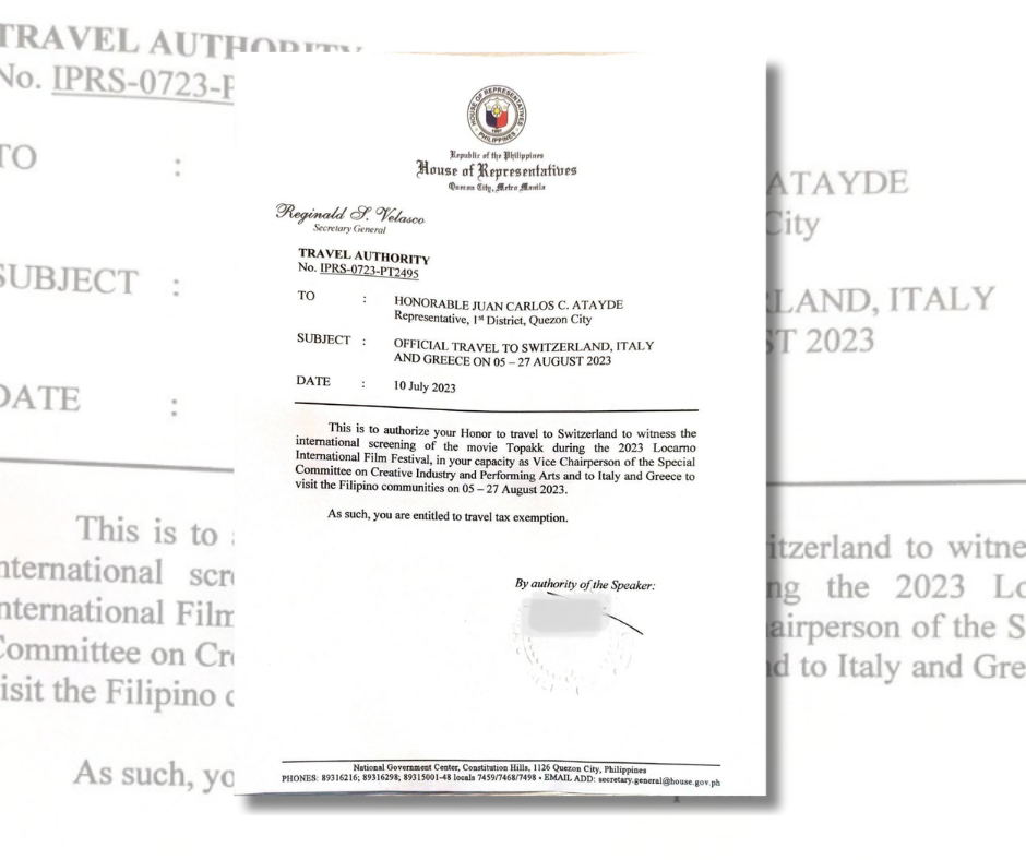 It is important to note that this travel will not be funded by public funds, and Rep. Atayde will be covering all expenses personally. As a result of his official capacity during the trip, he will be granted travel tax exemption.