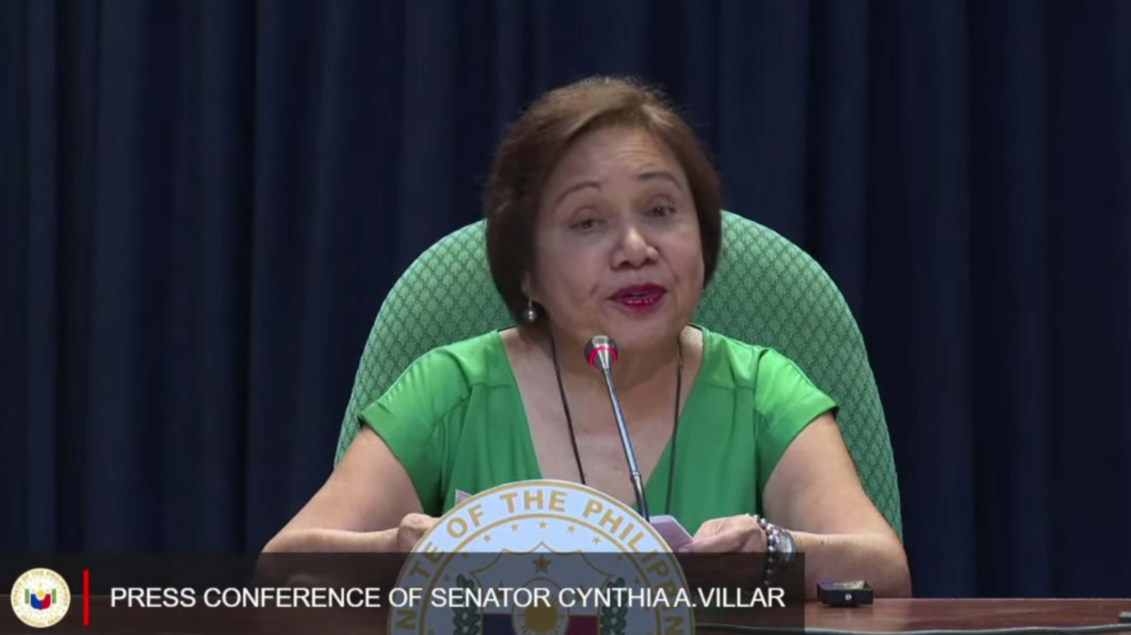 Senator Cynthia Villar. Screengrab from Senate PH