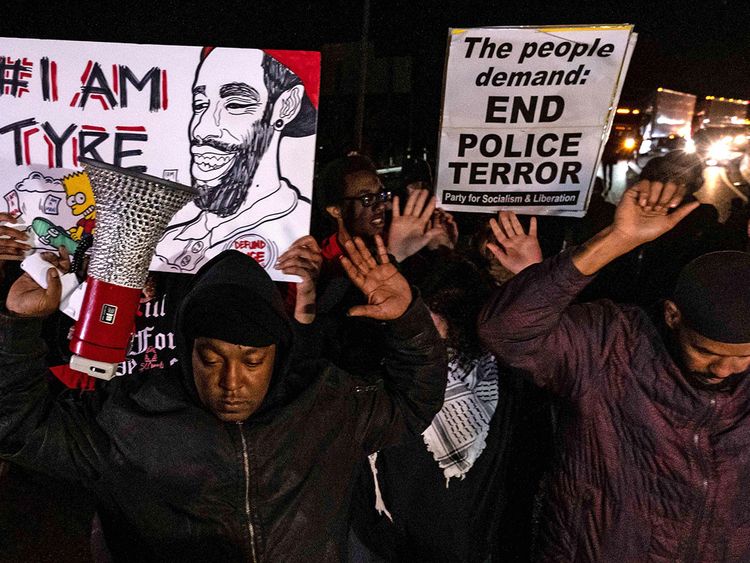 Protesters block traffic as they rally against the fatal police assault of Tyre Nichols in Memphis. Image Credit: AFP