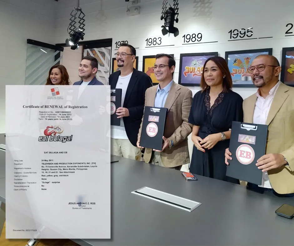 TAPE Inc. has successfully retained full ownership of the 'Eat Bulaga' trademark until 2033, as confirmed by Atty. Maggie Abraham-Garduque upon receiving the Certificate of Renewal.