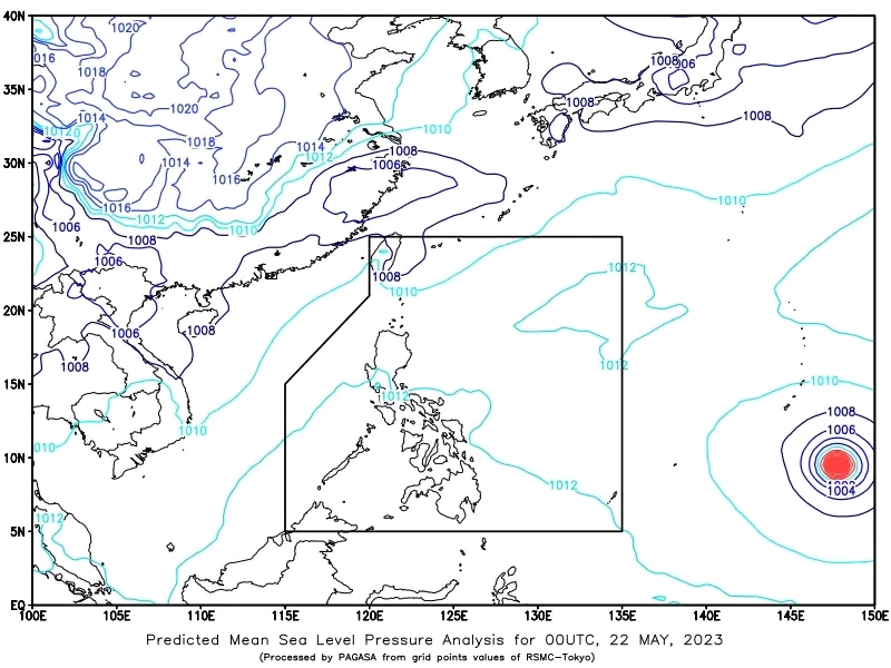 Meanwhile, Metro Manila and the rest of the country can expect partly cloudy to cloudy skies with isolated rainshowers or thunderstorms. These conditions are attributed to both the southwesterly windflow and localized thunderstorms. Similar to the aforementioned areas, flash floods or landslides may occur during severe thunderstorms.