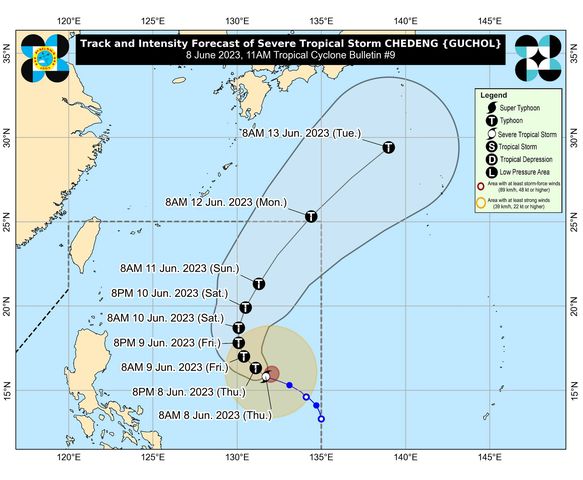 The Philippine Atmospheric, Geophysical, and Astronomical Services Administration (PAGASA) has released Tropical Cyclone Bulletin No. 9, providing updates on Severe Tropical Storm Chedeng (GUCHOL).