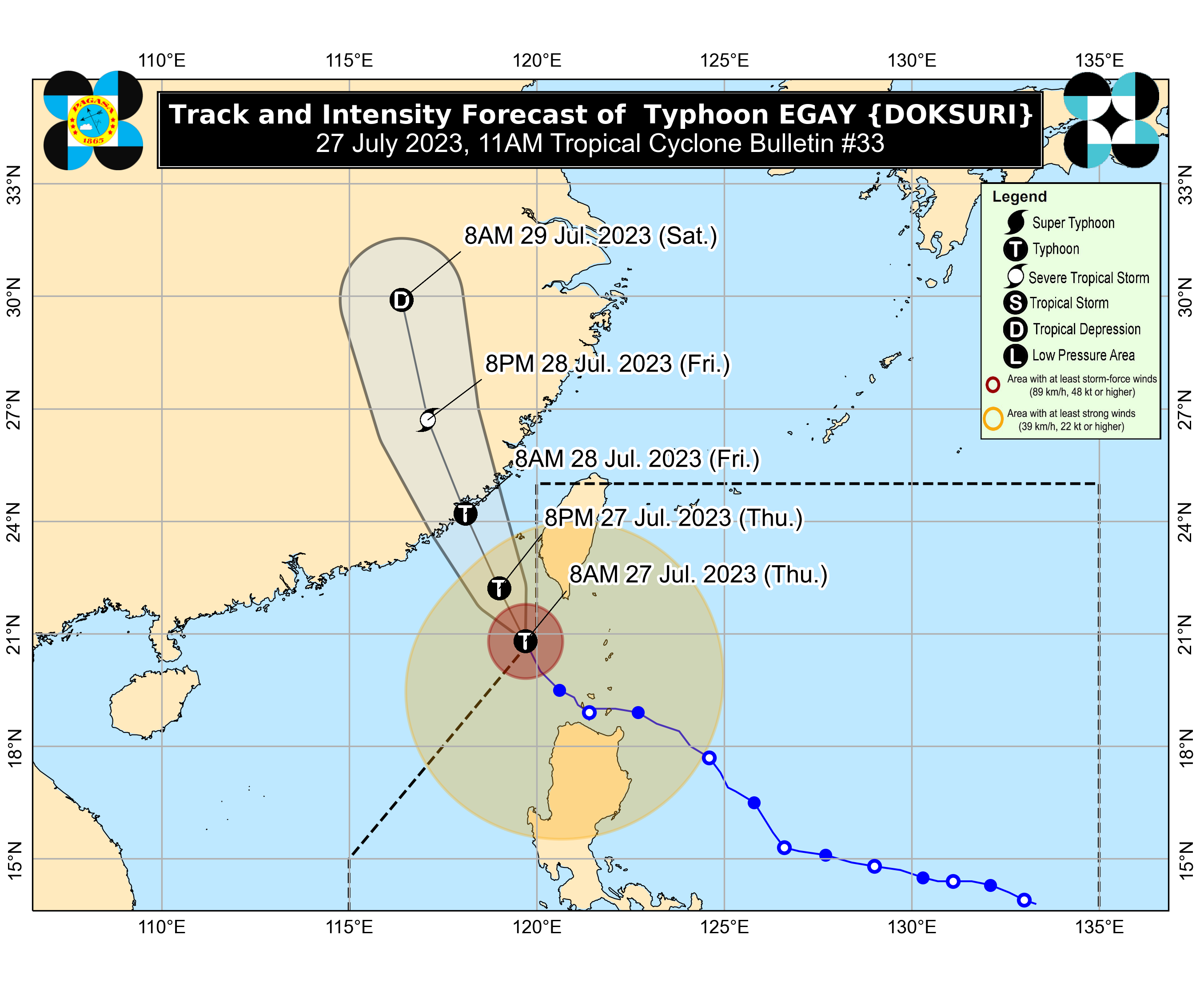 Residents in these areas are advised to take necessary precautions and closely monitor updates from PAGASA and local authorities to ensure their safety and preparedness for any potential impacts caused by Typhoon Egay and the enhanced Southwest Monsoon.
