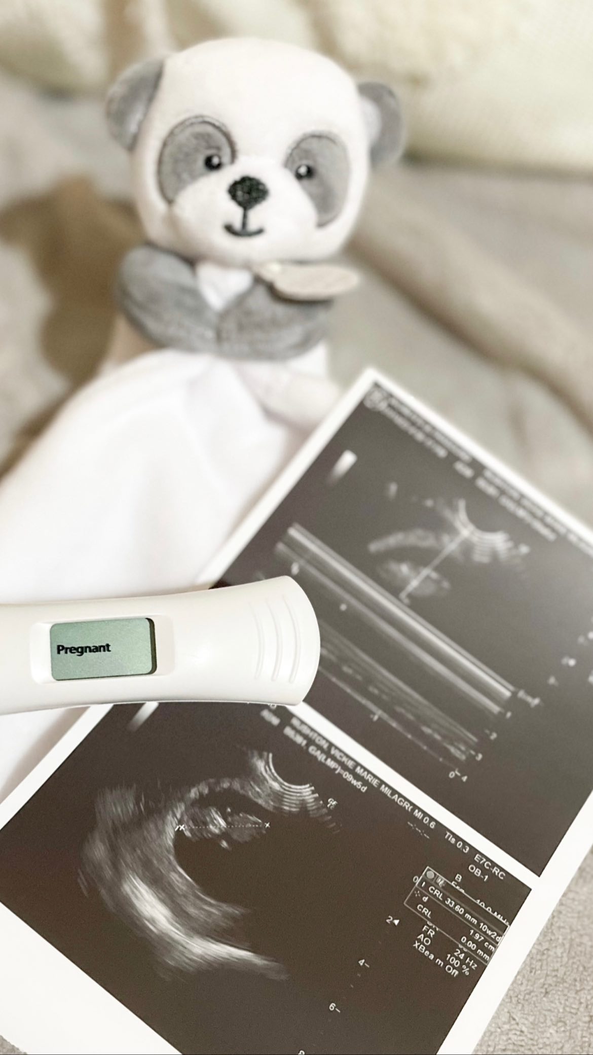 Sharing a photo of her holding her growing belly, the 29-year-old wrote, "The first time we saw you 馃 For this child we have prayed and the Lord has granted the desires of our hearts. We are over the moon to share that our little angel is coming soon."