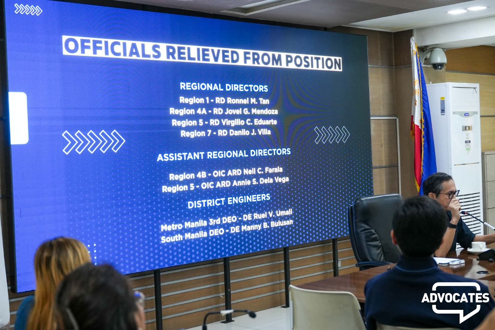 DPWH Secretary Vince Dizon said on Monday, January 12, that a total of eight officials have been relieved from their posts as part of an ongoing internal investigation. These include four regional directors—Ronnel M. Tan of Region 1, Jovel G. Mendoza of Region 4A, Virgilio C. Eduarte of Region 5, and Danilo J. Villa of Region 7—along with two assistant regional directors, OIC ARD Neil C. Farala of Region 4B and OIC ARD Annie S. Dela Vega of Region 5. Also removed were two district engineers, Ruel V. Umali of the Metro Manila 3rd District Engineering Office and Manny B. Bulusan of the South Manila District Engineering Office.