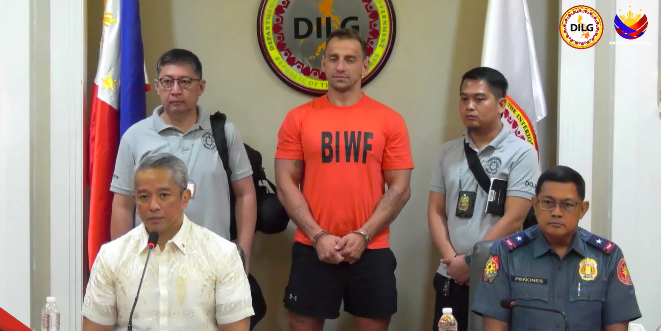 In a press conference held in Quezon City this Monday morning, April 7, Interior and Local Government secretary Juanito Victor Remulla presented arrested Russian-American vlogger Vitaly Zdorovetskiy, whose recent behavior toward Filipinos sparked outrage online.