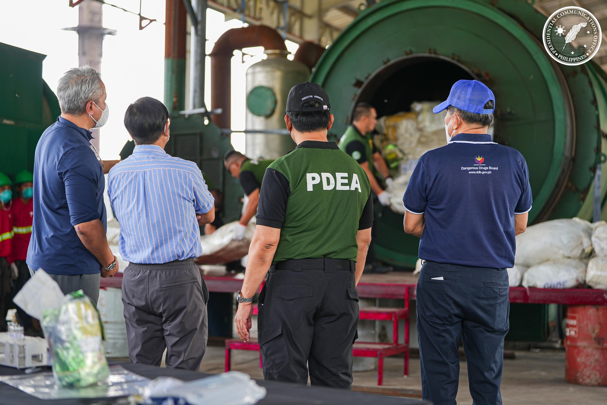 Joined by officials from the Department of the Interior and Local Government (DILG), PDEA, Dangerous Drugs Board (DDB), Department of Justice (DOJ), and the Philippine Coast Guard (PCG), President Marcos observed the confirmatory testing of selected samples of methamphetamine hydrochloride (shabu), marijuana, cocaine, and ecstasy. These tests ensured the authenticity and identity of the substances prior to destruction.
