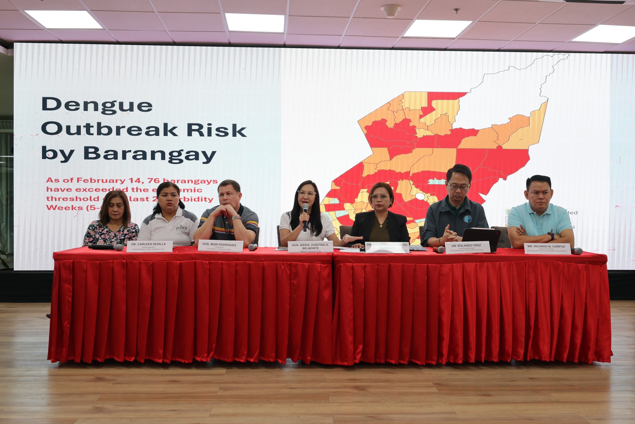 She made the announcement alongside Quezon City Health Department OIC Dr. Ramona Abarquez, Barangay and Community Relations Department head Ricky Corpuz, Councilor Mari Rodriguez, Schools Division Superintendent Carleen S. Sedilla, Epidemiology and Surveillance Division head Dr. Rolly Cruz, and Dr. Rosalie Espelita of the Department of Health - Metro Manila Center for Health Development.