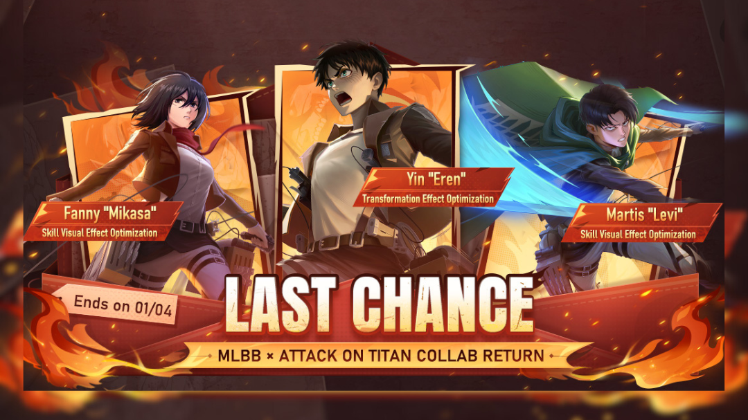 Fans of Mobile Legends: Bang Bang and Attack on Titan are down to the final days to grab their favorite crossover content, as the MLBB × Attack on Titan Collab Return event officially ends on January 4.