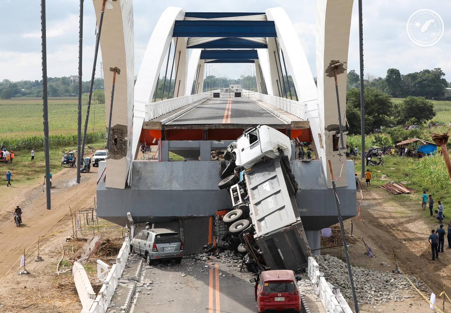 While no casualties were reported when the bridge fell on February 27, the incident left a dump truck, two SUVs, and a motorcycle crushed under the debris. Marcos noted that the dump truck was overloaded, exceeding the legal limit of 45 tons set by the Anti-Overloading Law (RA 8794).