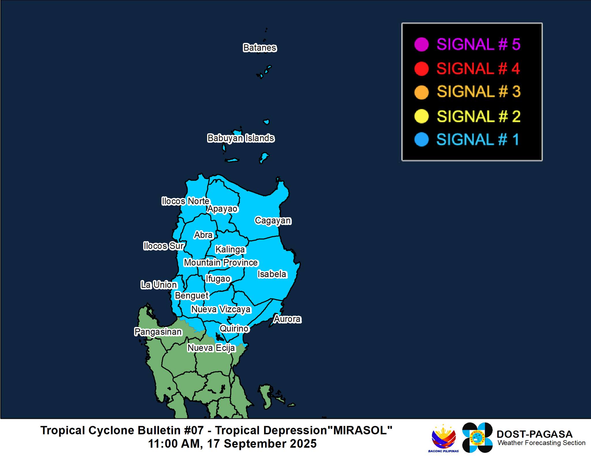 PAGASA's latest track shows Mirasol continuing its northwestward path and is expected to exit the Philippine Area of Responsibility tomorrow morning or afternoon. While it crosses the Luzon landmass, it is projected to maintain its current strength, but once over the sea, further intensification is not ruled out.
