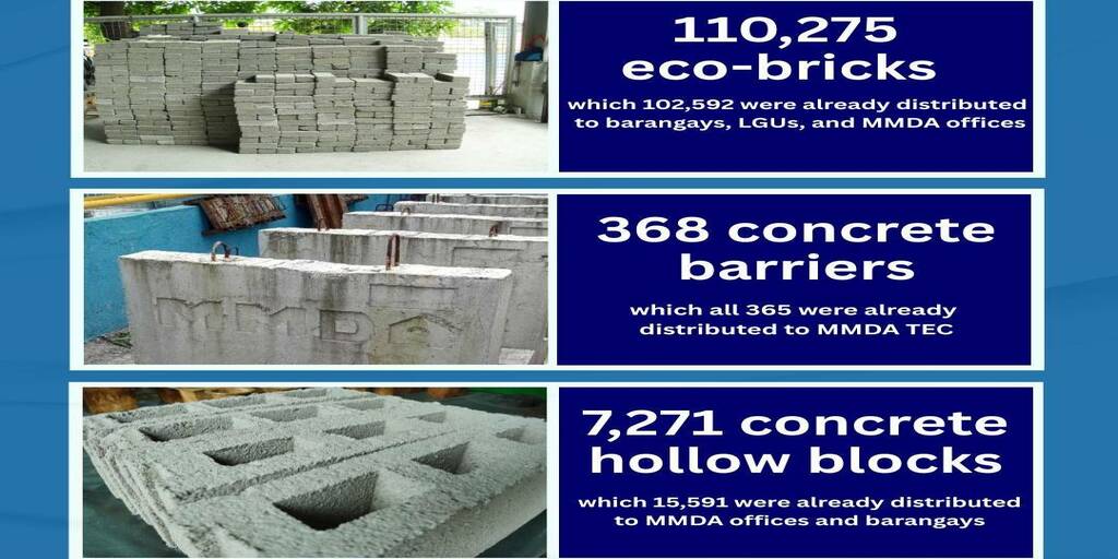 The Metropolitan Manila Development Authority (MMDA) continues to advance its innovative approach to waste management through the Integrated Solid Waste Management Facility (ISWMF) located at the Vitas Pumping Station. From April 2021 to June 2025, the agency’s Brick Making Facility produced a total of 110,275 eco-bricks, 368 concrete barriers, and 17,271 hollow blocks.