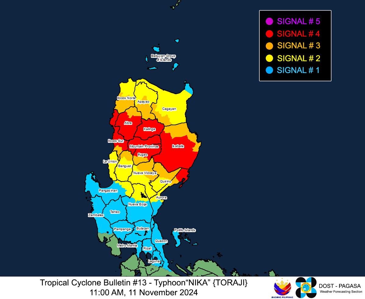 Typhoon Nika is expected to pass through mainland Luzon and exit into the West Philippine Sea by tomorrow, where it may weaken to a severe tropical storm. As it exits the Philippine Area of Responsibility, it is expected to gradually weaken further, though it will continue to bring rainy and gusty conditions over certain areas.