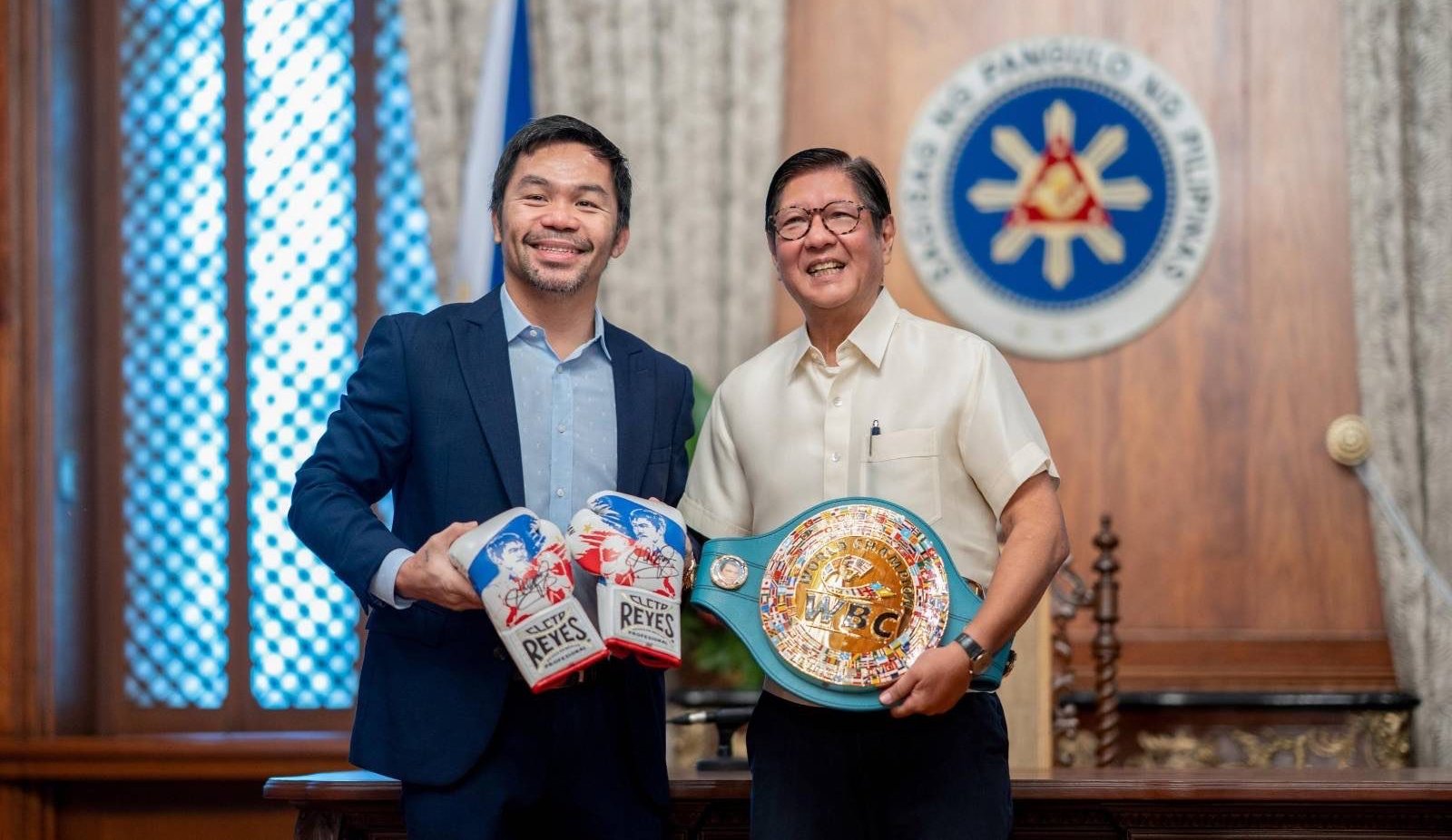 During the courtesy visit, Pacquiao presented President Marcos with the World Boxing Council (WBC) belt he received from his comeback fight against WBC welterweight champion Mario Barrios last July 19 in Las Vegas. He also gave the President a pair of boxing gloves as a token of appreciation.