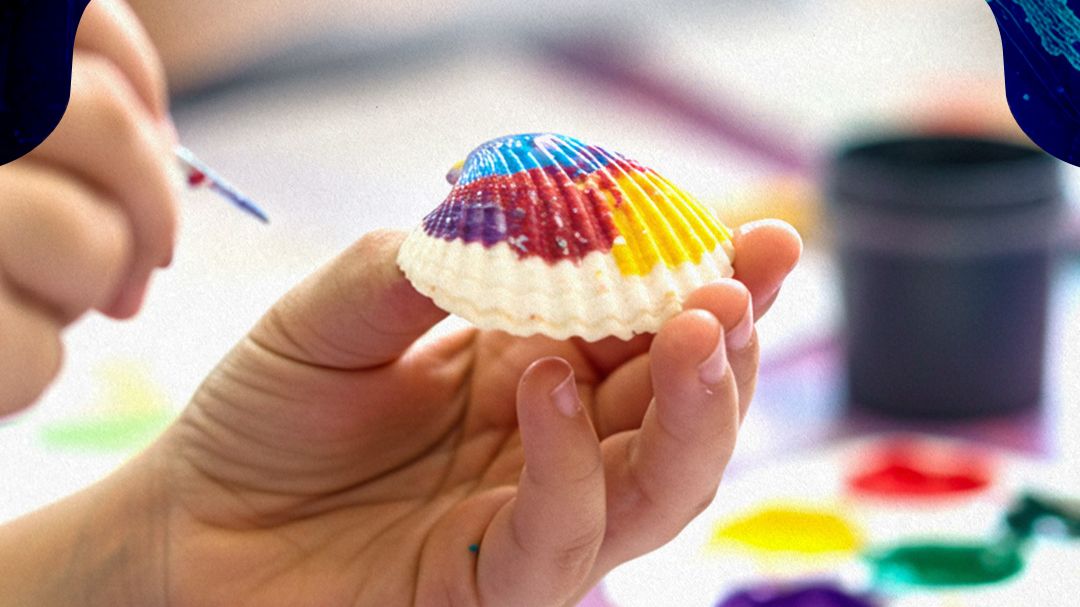 Create your own colorful seashell masterpiece to take home as a keepsake!