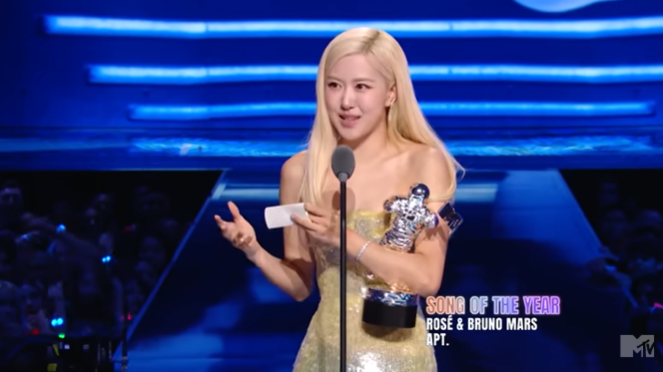 It was a night of celebration and heartfelt moments at the MTV Video Music Awards as Rosé of BLACKPINK and Bruno Mars clinched Song of the Year for their chart-topping collaboration “APT.”