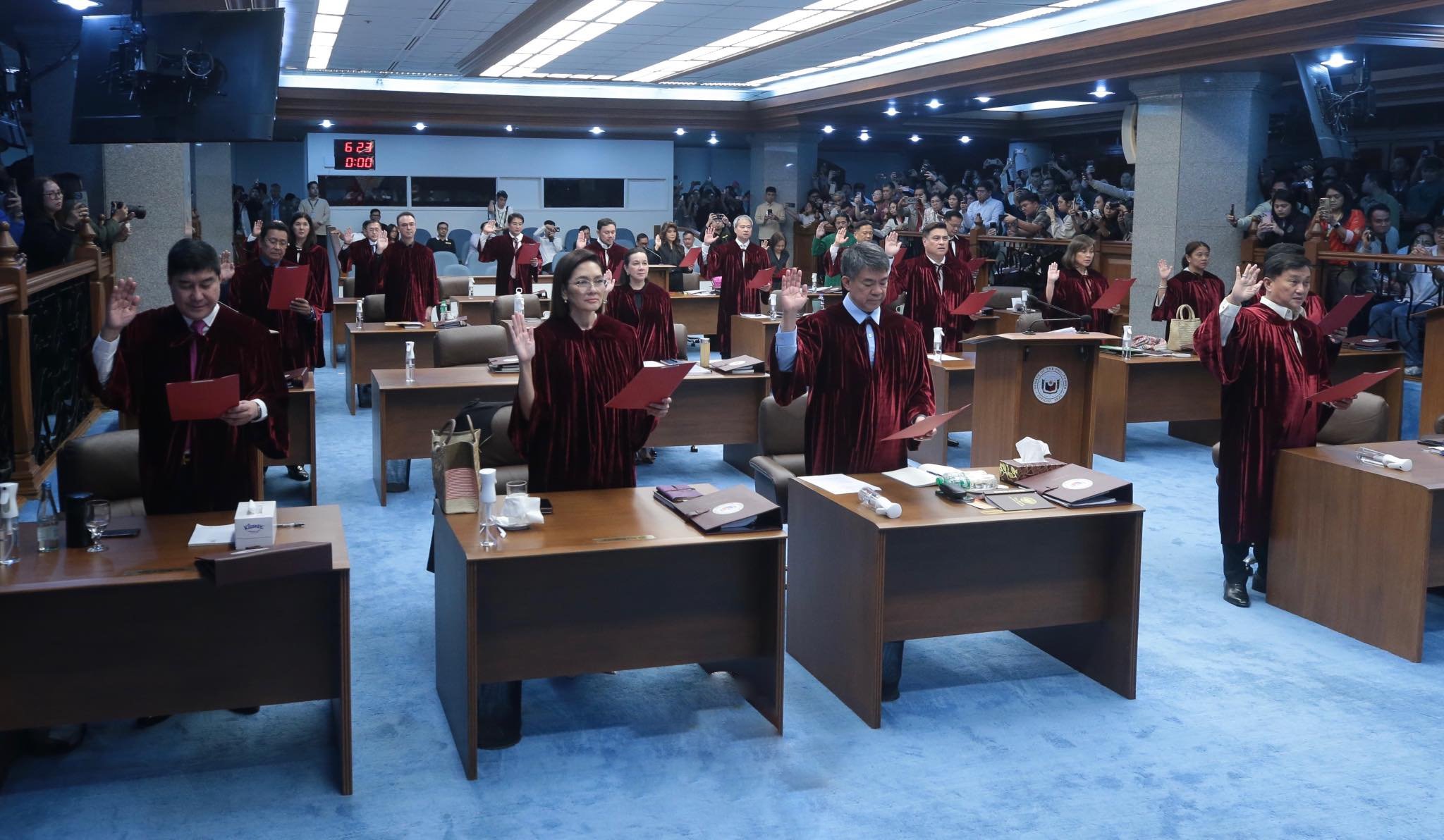 Also pledging to uphold fairness and impartiality in the trial were senators Nancy Binay, Alan Peter Cayetano, Pia Cayetano, Ronald “Bato” Dela Rosa, Win Gatchalian, Christopher Lawrence “Bong” Go, Lito Lapid, Loren Legarda, Grace Poe, Ramon Bong Revilla Jr., Raffy Tulfo, Joel Villanueva, Cynthia Villar, and Juan Miguel “Migz” F. Zubiri.