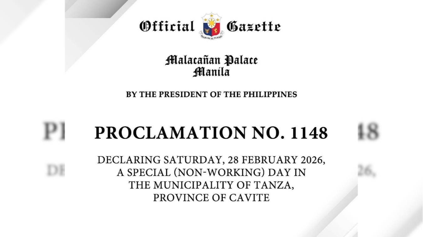 Residents of Tanza, Cavite can look forward to a day of celebration after February 28, 2026 was officially declared a Special (Non-Working) Day in the municipality under Proclamation No. 1148, in commemoration of the 112th Araw ng Tanza.