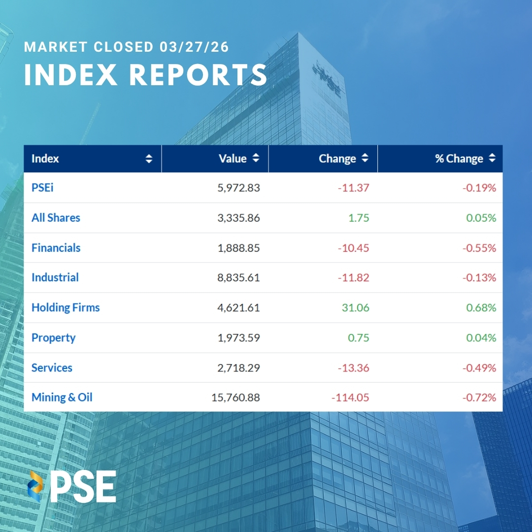 The Philippine Stock Exchange Index ended Friday’s trading session slightly lower, reflecting cautious investor sentiment and continued foreign selling.