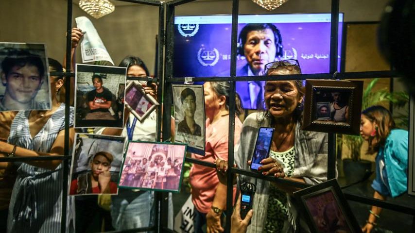 Families of individuals who allegedly suffered abuses during the previous administration’s anti-drug campaign joined rights advocates at the University of the Philippines Diliman on Monday to witness the opening of the confirmation of charges hearing against former Philippine president Rodrigo Duterte before the International Criminal Court.