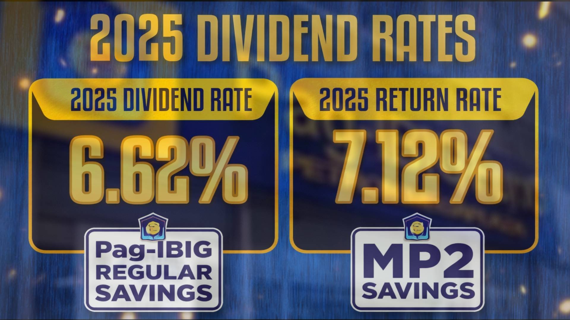 According to the agency, Pag-IBIG Regular Savings will earn 6.62% per annum, while MP2 Savings will yield 7.12% per annum, both reflecting slight increases from the previous year. Pag-IBIG also announced a record ₱64.34 billion in dividend distribution, the highest in its history.