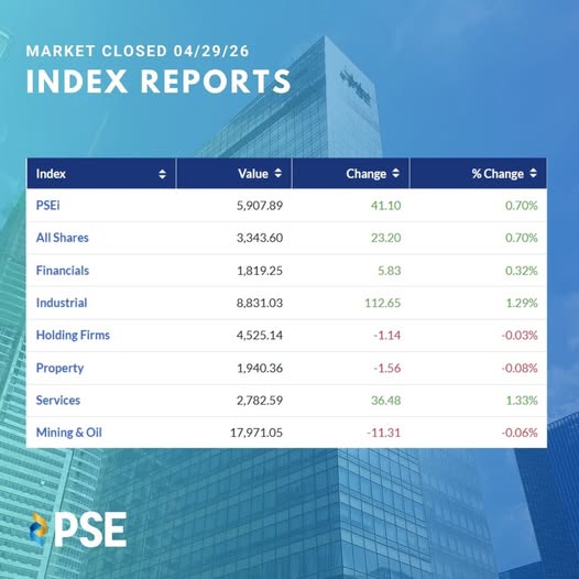 The PSEi rebounded on April 29, 2026, closing higher as investors returned to the market with cautious optimism.