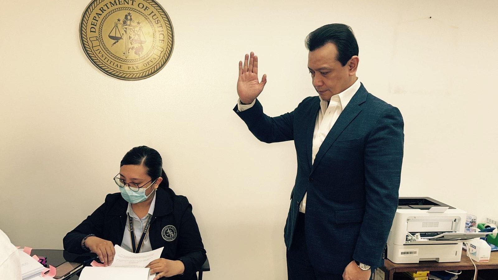 “Ngayong araw, sinampahan ko ng iba't ibang kaso sina Levito Baligod, 18 ‘ex-Marines,’ Mike Defensor, Jay Sonza, Lorraine Badoy, at Cathy Binag sa DoJ. Ang kanilang gawa-gawang ‘bribery scheme’ ay isang desperadong paraan para dungisan ang mga pagdinig sa ICC at takutin ang mga investigators at witnesses nito. Pananagutin natin sila dahil dito,” Trillanes said.