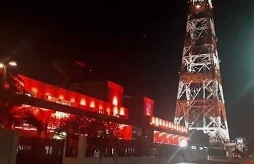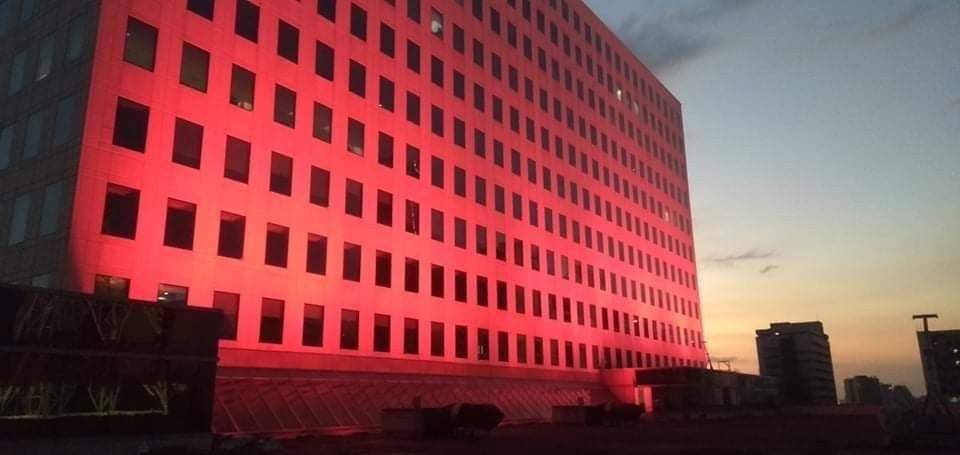 ABS-CBN bathes its building’s facade in a warm glowing tribute of light in honor of the countless medical and health frontliners in the fight against the COVID-19 pandemic