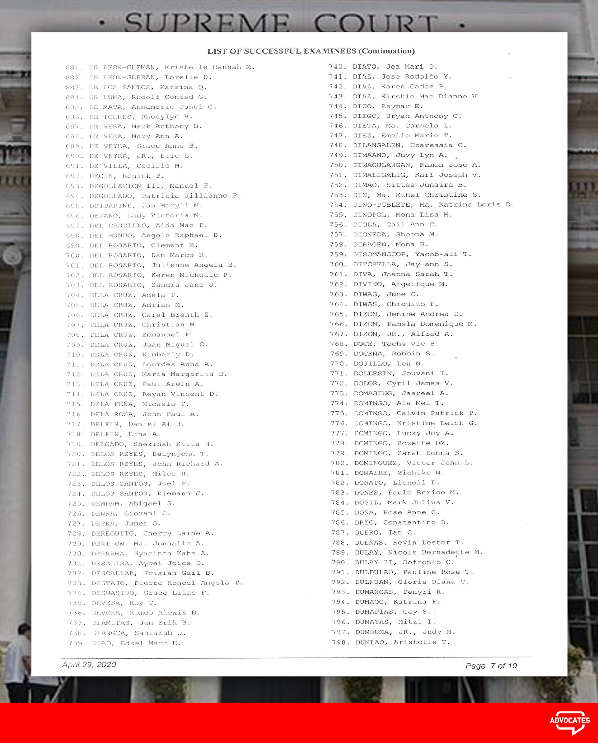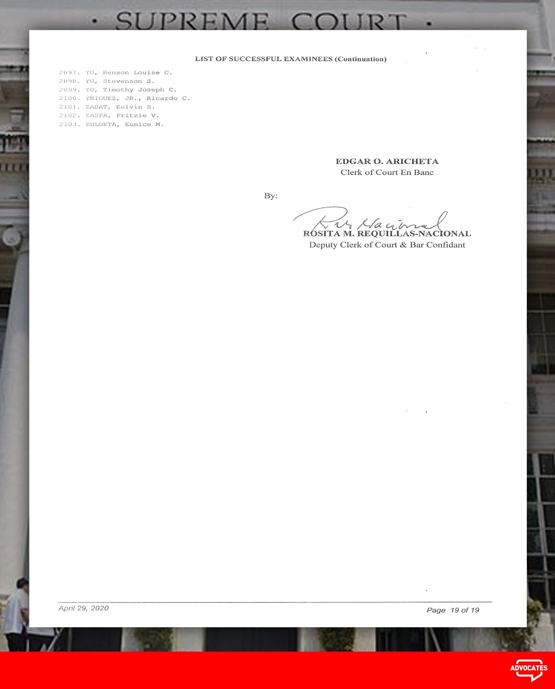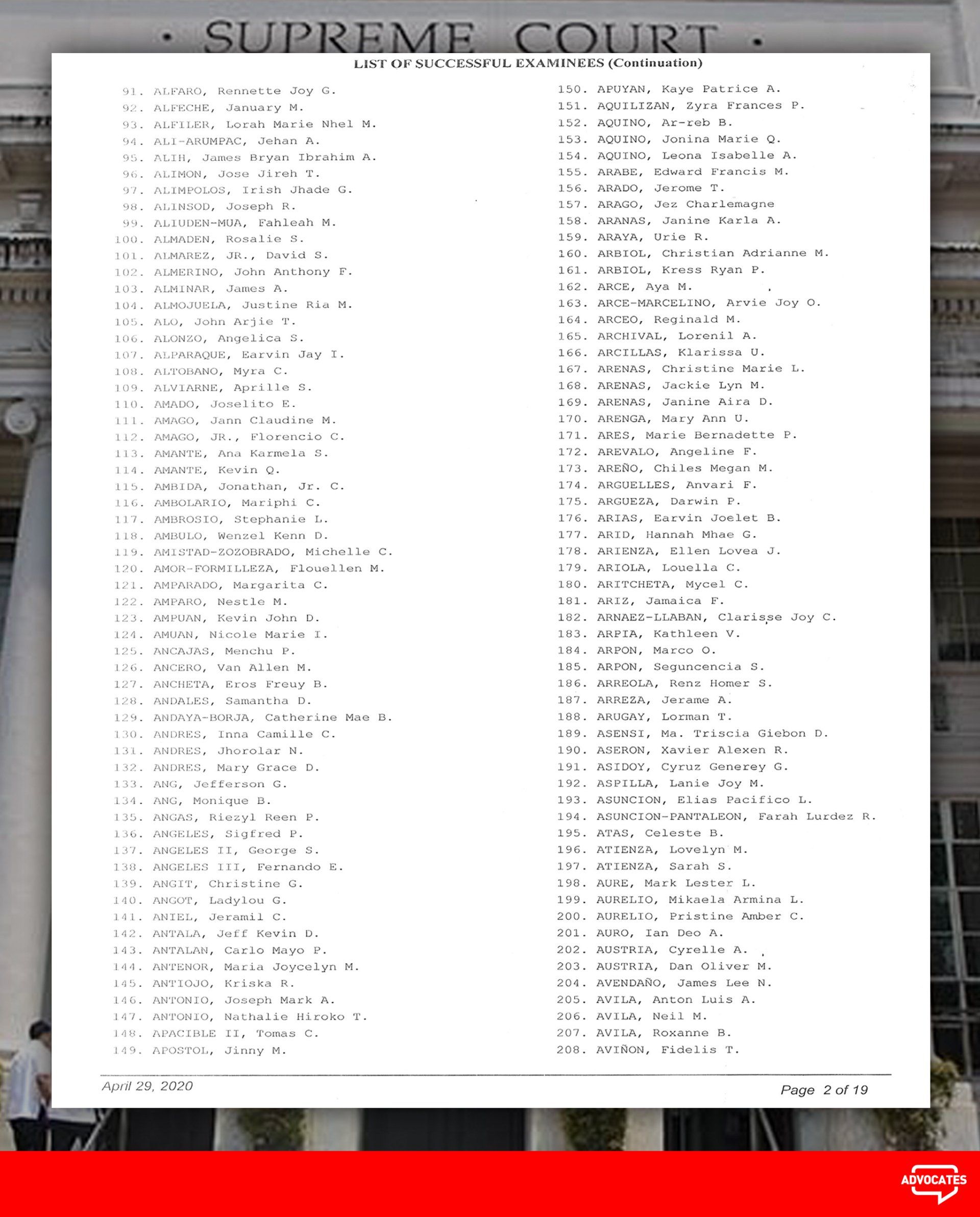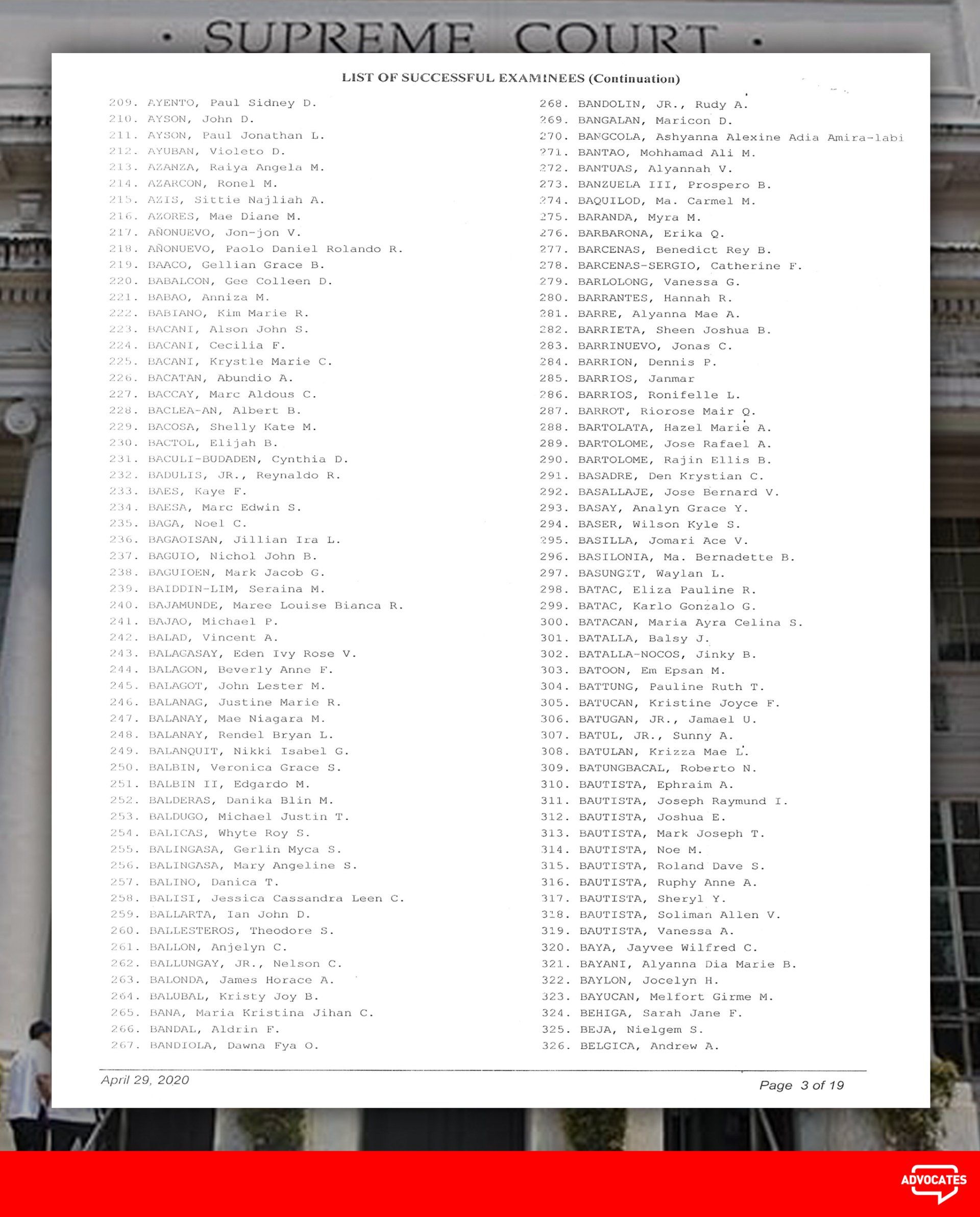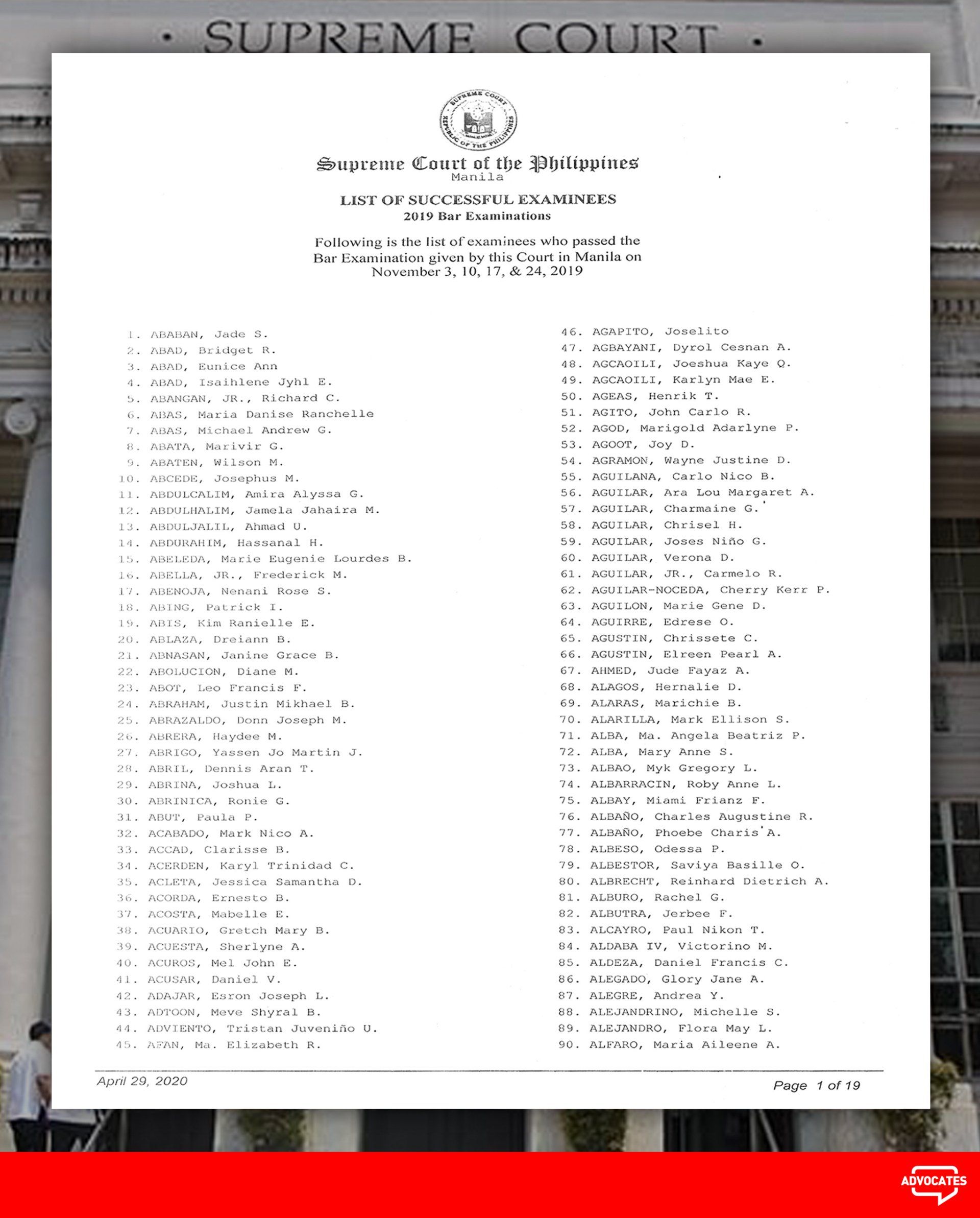 The Supreme Court announces the results of the 2019 Bar Examinations on Wednesday, April 29.