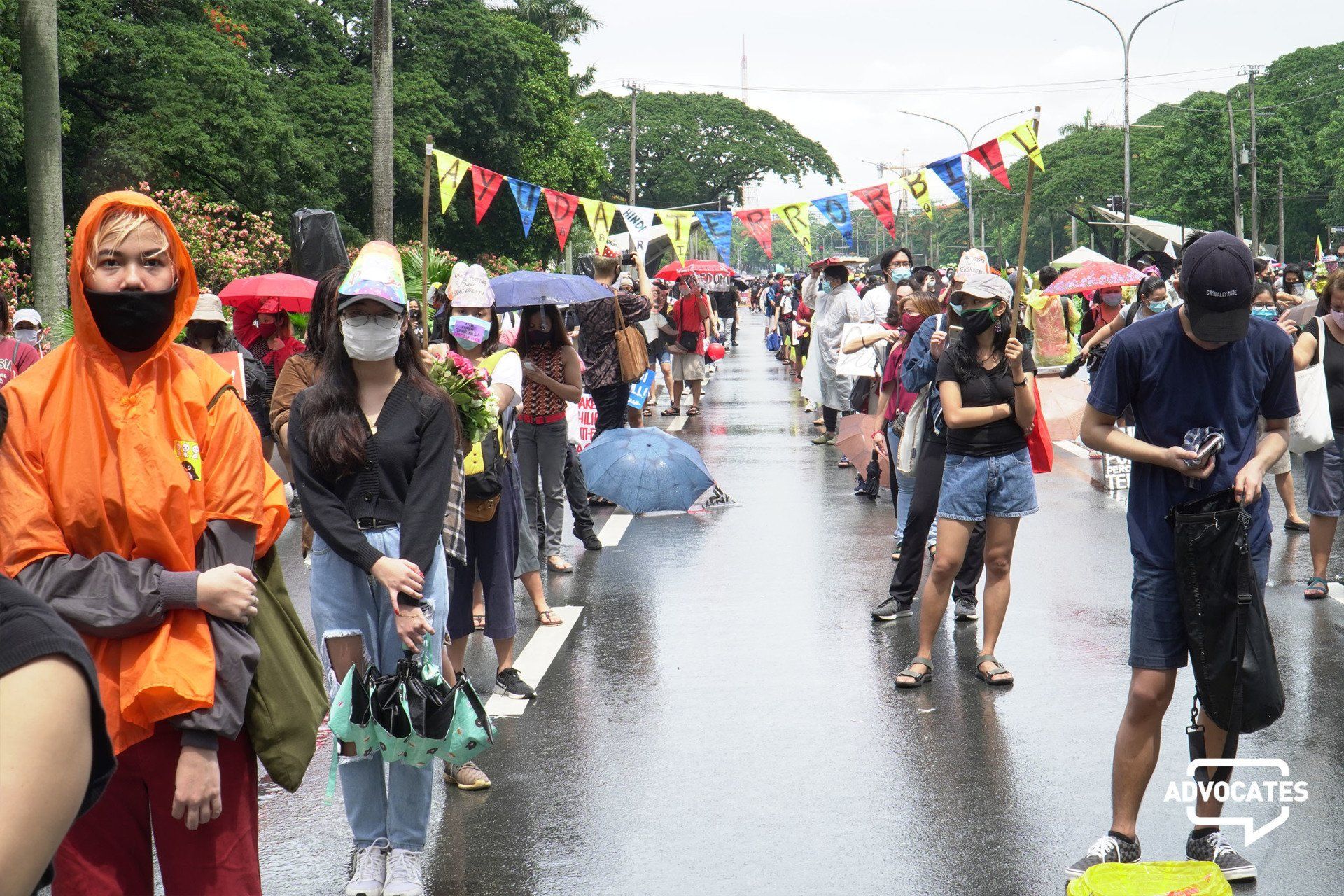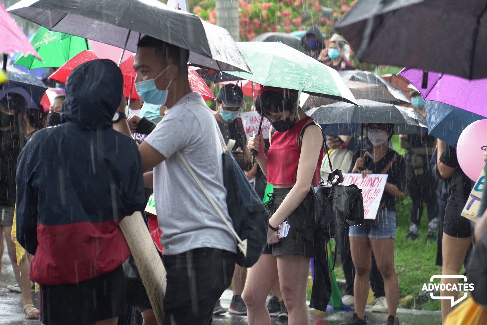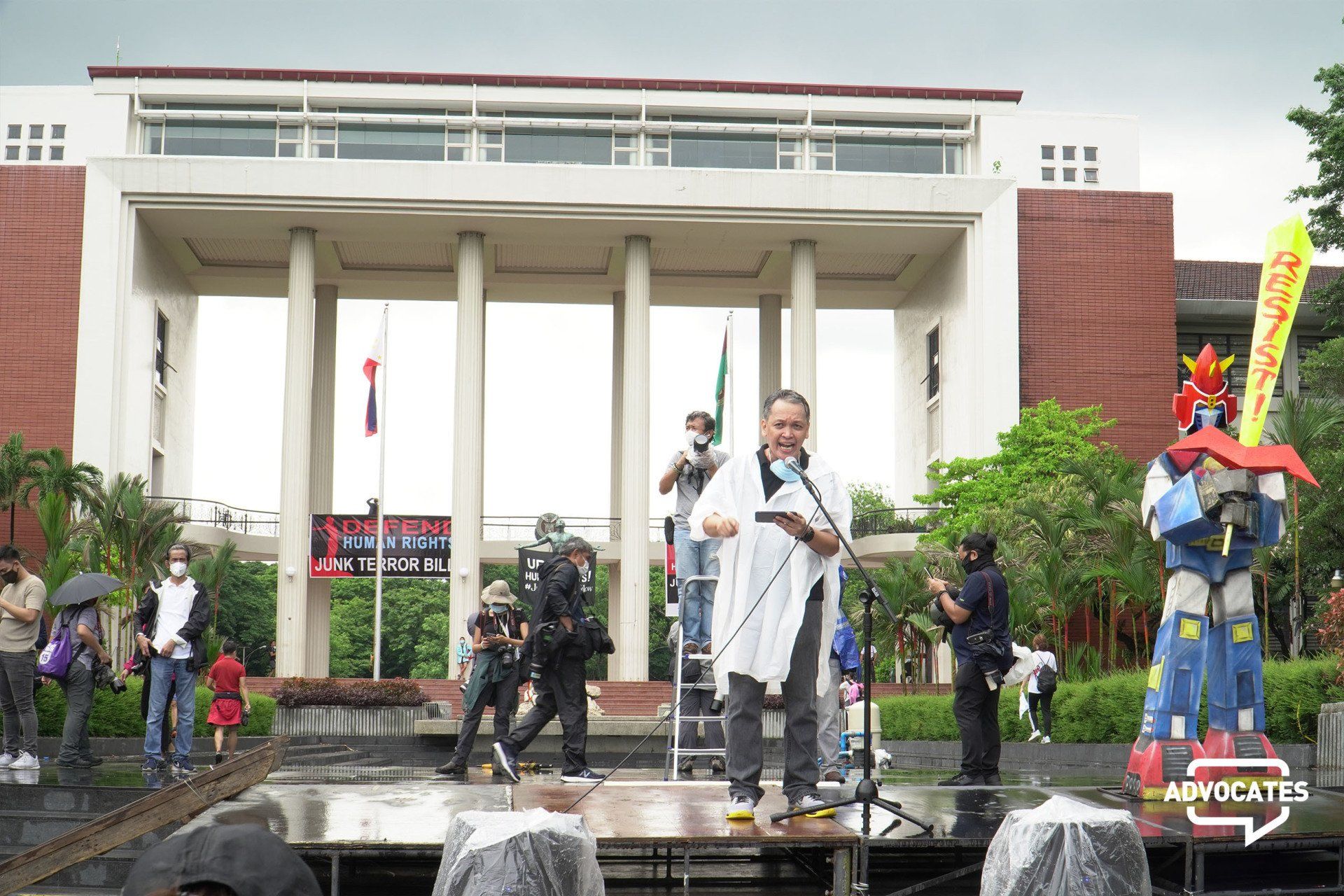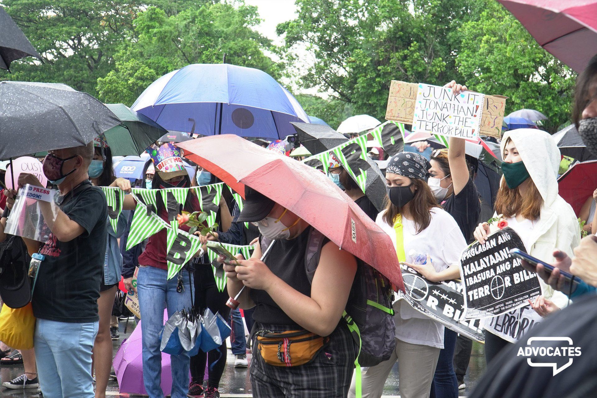 LOOK: The rain did not stop protesters from holding a “grand mañanita” rally at the UP Diliman campus on Independence Day to show their opposition to the controversial anti-terror bill.