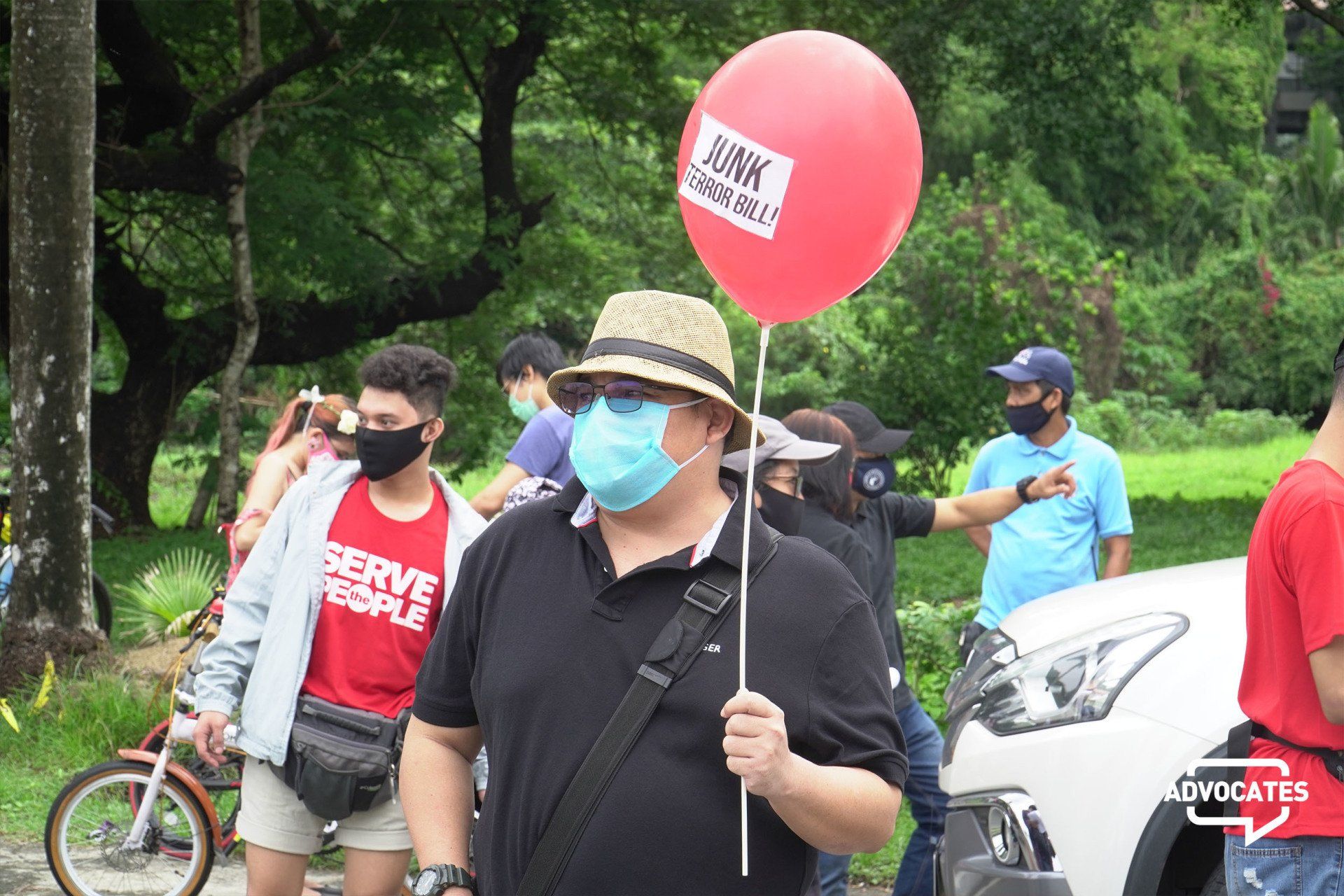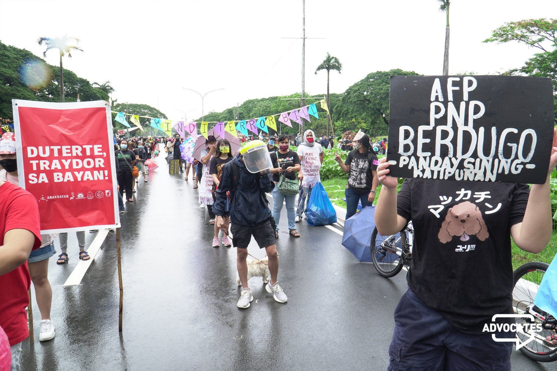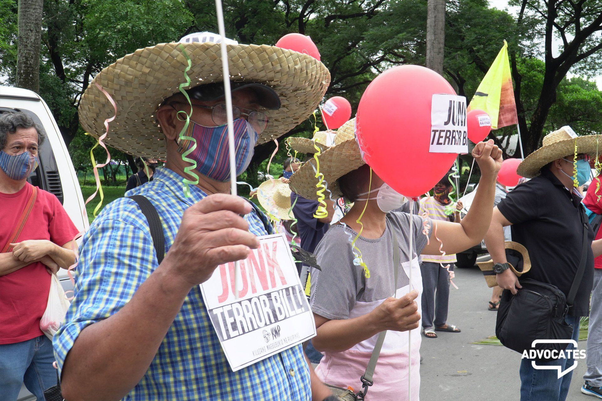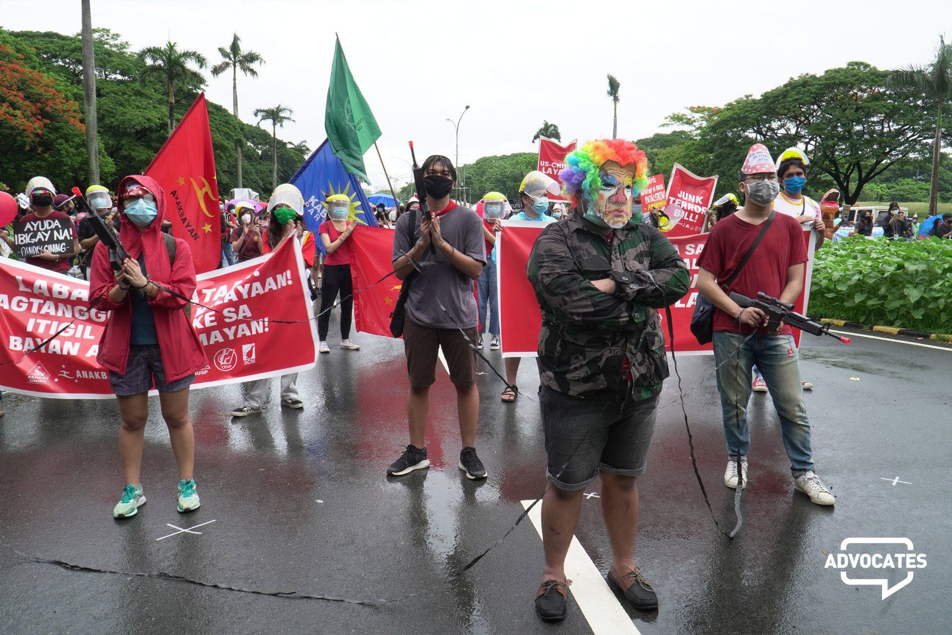 LOOK: The rain did not stop protesters from holding a “grand mañanita” rally at the UP Diliman campus on Independence Day to show their opposition to the controversial anti-terror bill.
